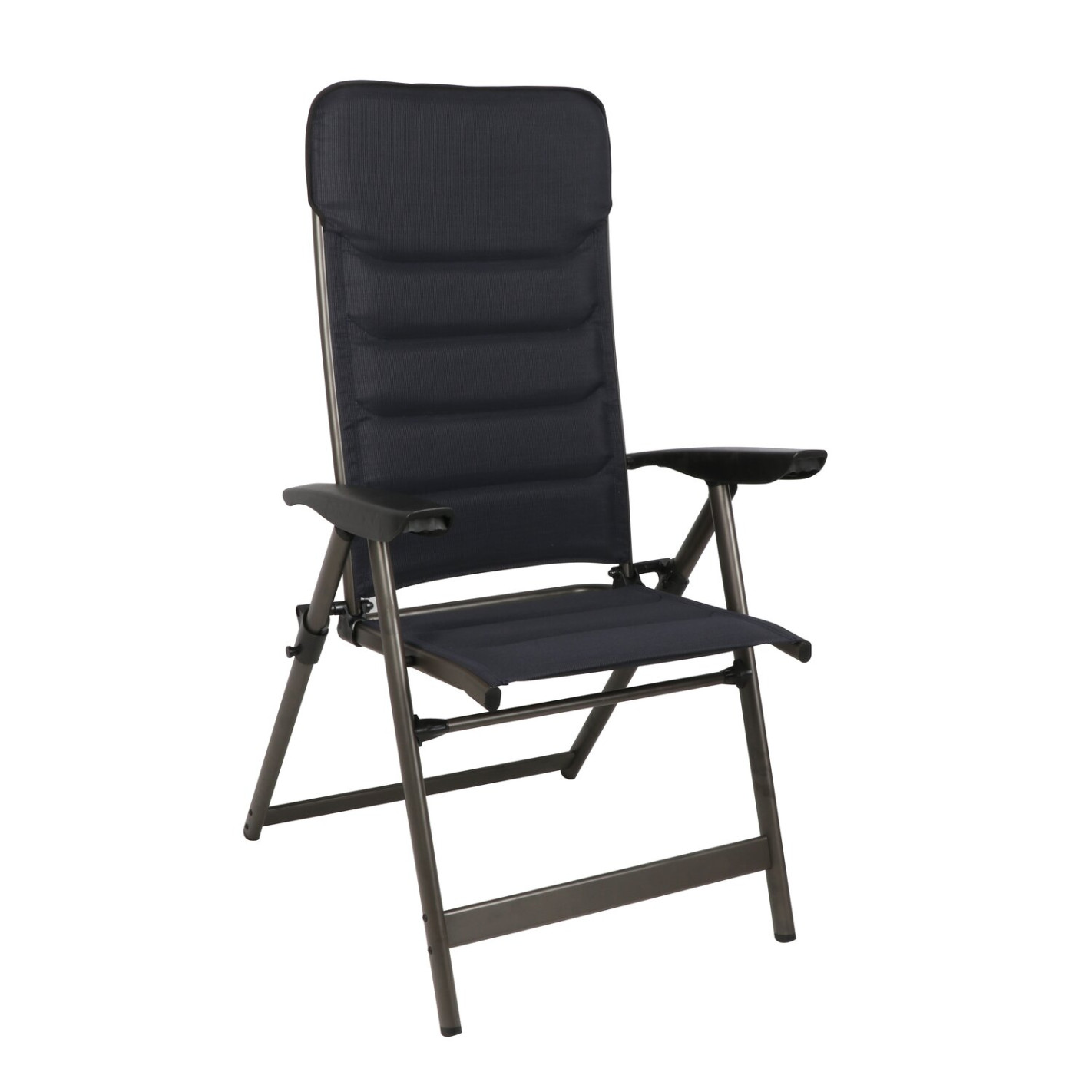 Fauteuil camping aluminium luxe Feast. Ce fauteuil premium ultra-confort vous accompagnera dans vos escapades en véhicule de loisirs: camping-car, caravane ou fourgon-aménagé. En toile de qualité supérieure : polyester haut de gamme matelassé, et dossier ergonomique 7 positions pour un confort maximum. Son armature est en aluminium pour un usage intensif et résisté aux caprices du temps. Hauteur : 121 cm. Largeur : 48,8 cm. Tubes rectangulaires : 40 x 25 mm. Charge max. : 120 kg. Poids : 5,1 kg.