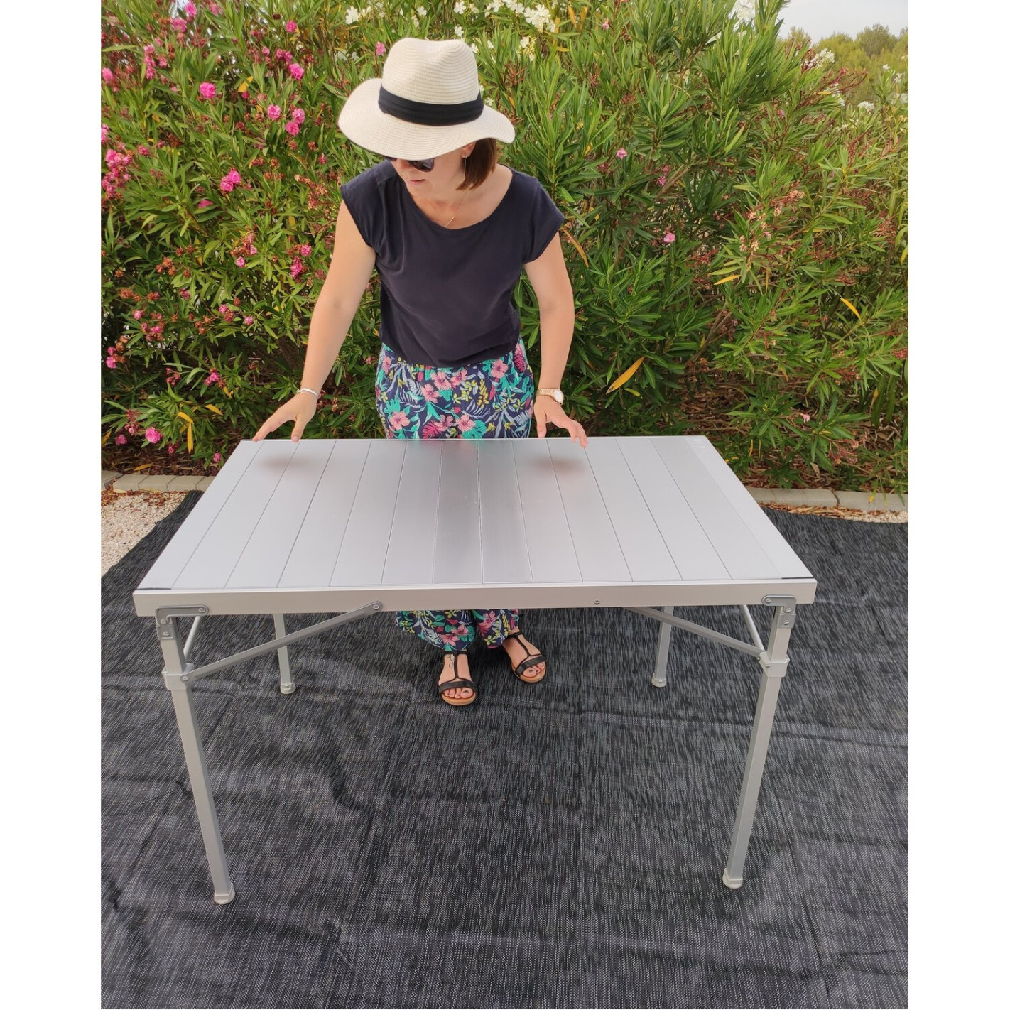 L’aluminium permet à la table d’être légère et résistante (entre 5 et 7 kg). D’ailleurs, quel que soit le modèle choisi, elle peut supporter jusqu’à 30 kg. De plus, il s’agit d’un matériau facile à entretenir au quotidien.