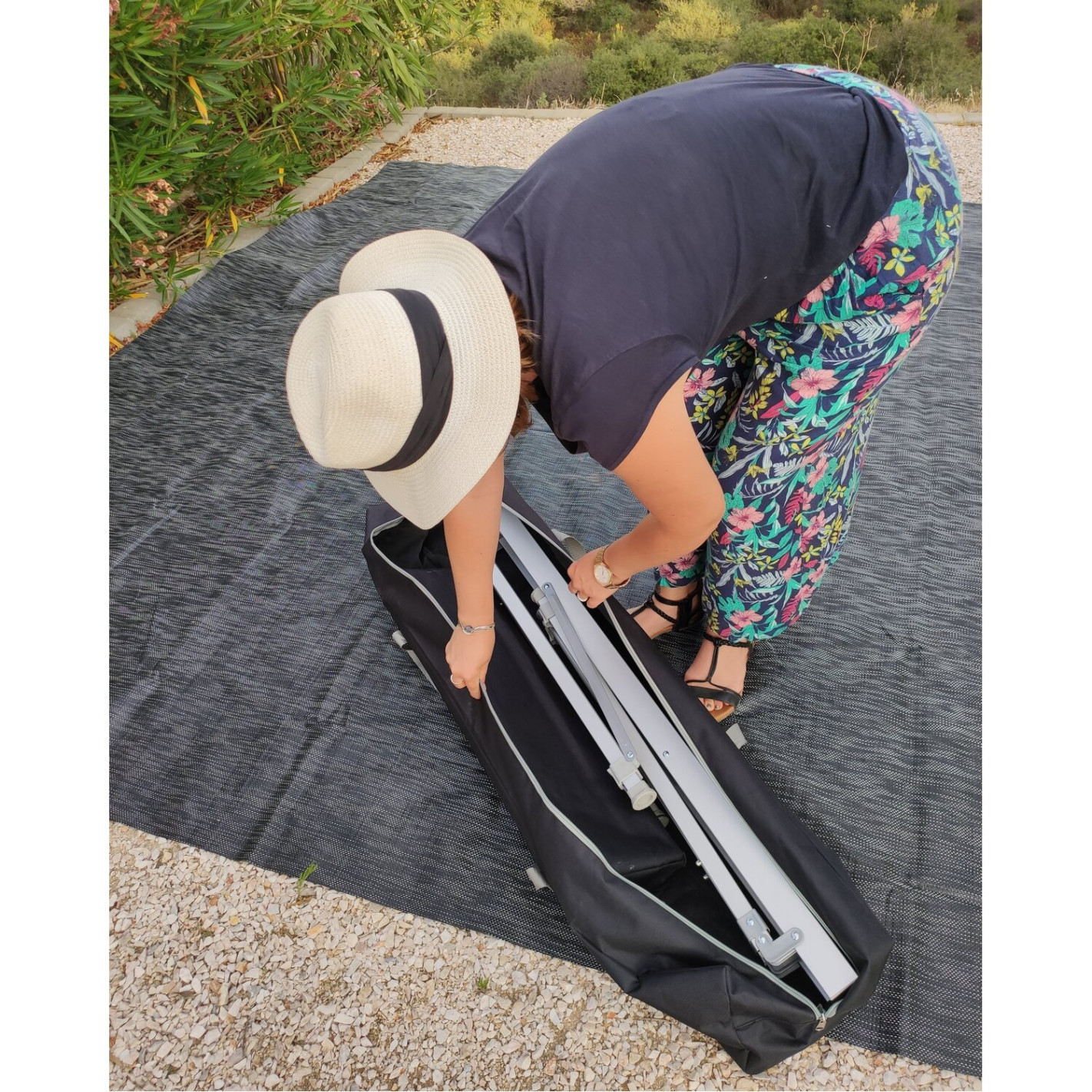 La table de camping Soplair peut être utilisée en extérieur pour l’activité de votre choix: pique-nique, repas, apéritif, jeu de société, pause détente etc… Facile à transporter dans son sac de transport, vous pouvez l’emmener partout avec vous dans votre van, fourgon, bateau… ou bien la stocker sous votre abri jardin avec les autres accessoires de mobilier.