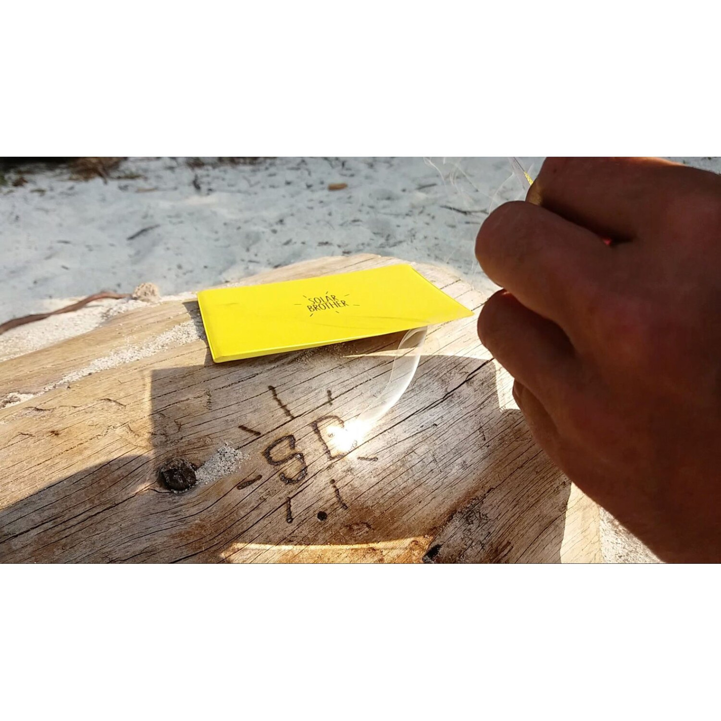 Il faut utiliser la firecard. Très simple à utiliser, elle concentre les rayons du soleil (à travers la lentille) en un point précis et l'allumage est immédiat.