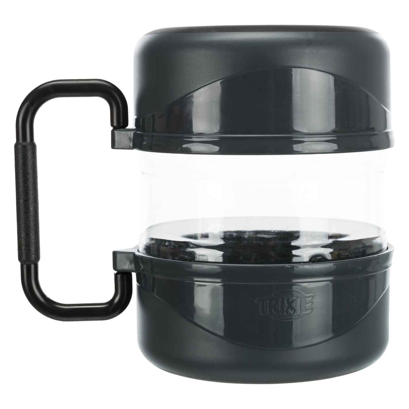 1 boîte de nourriture de 2 L et 2 gamelles de 0,75 l. Coloris : gris foncé. Matière : plastique. Base en caoutchouc anti-dérapant.