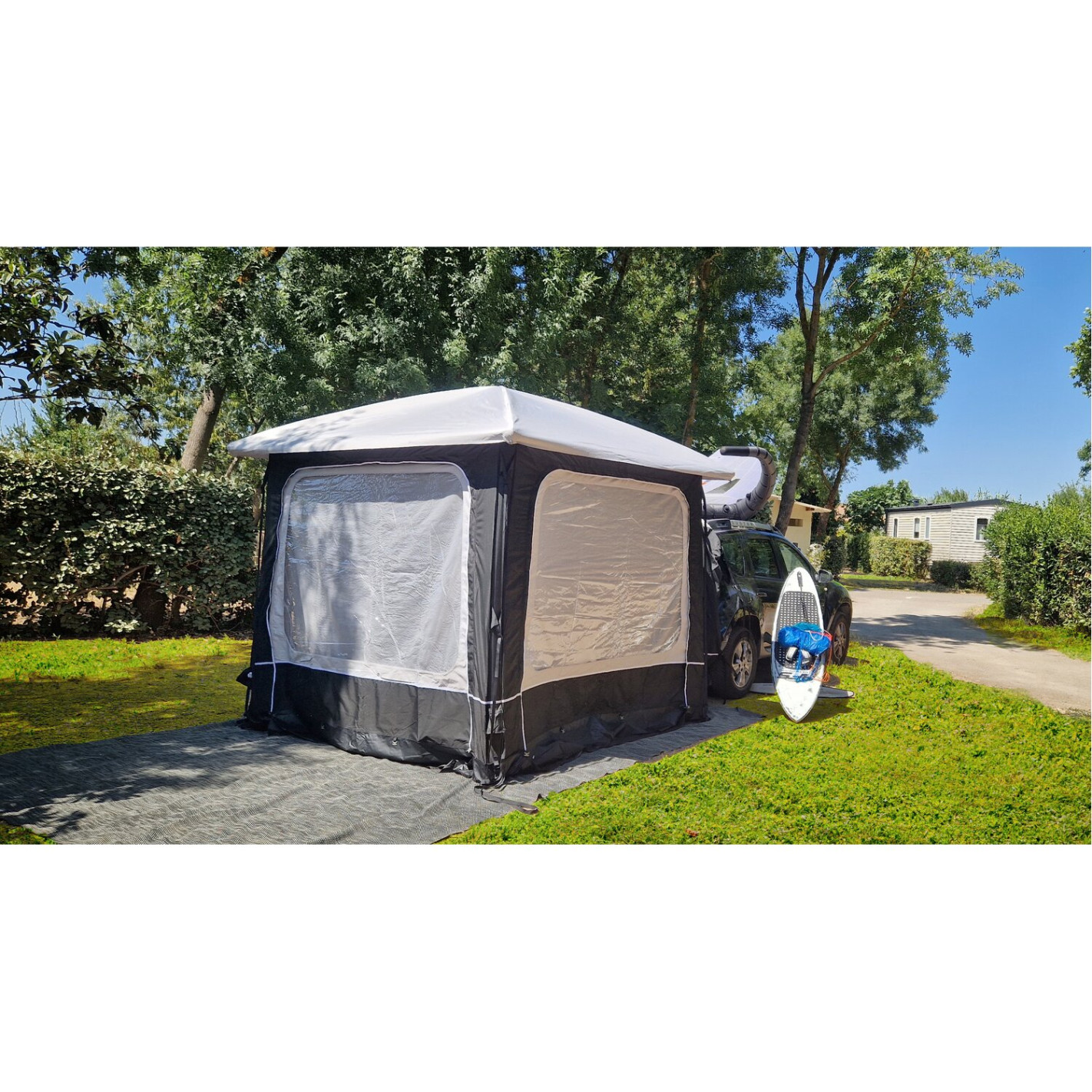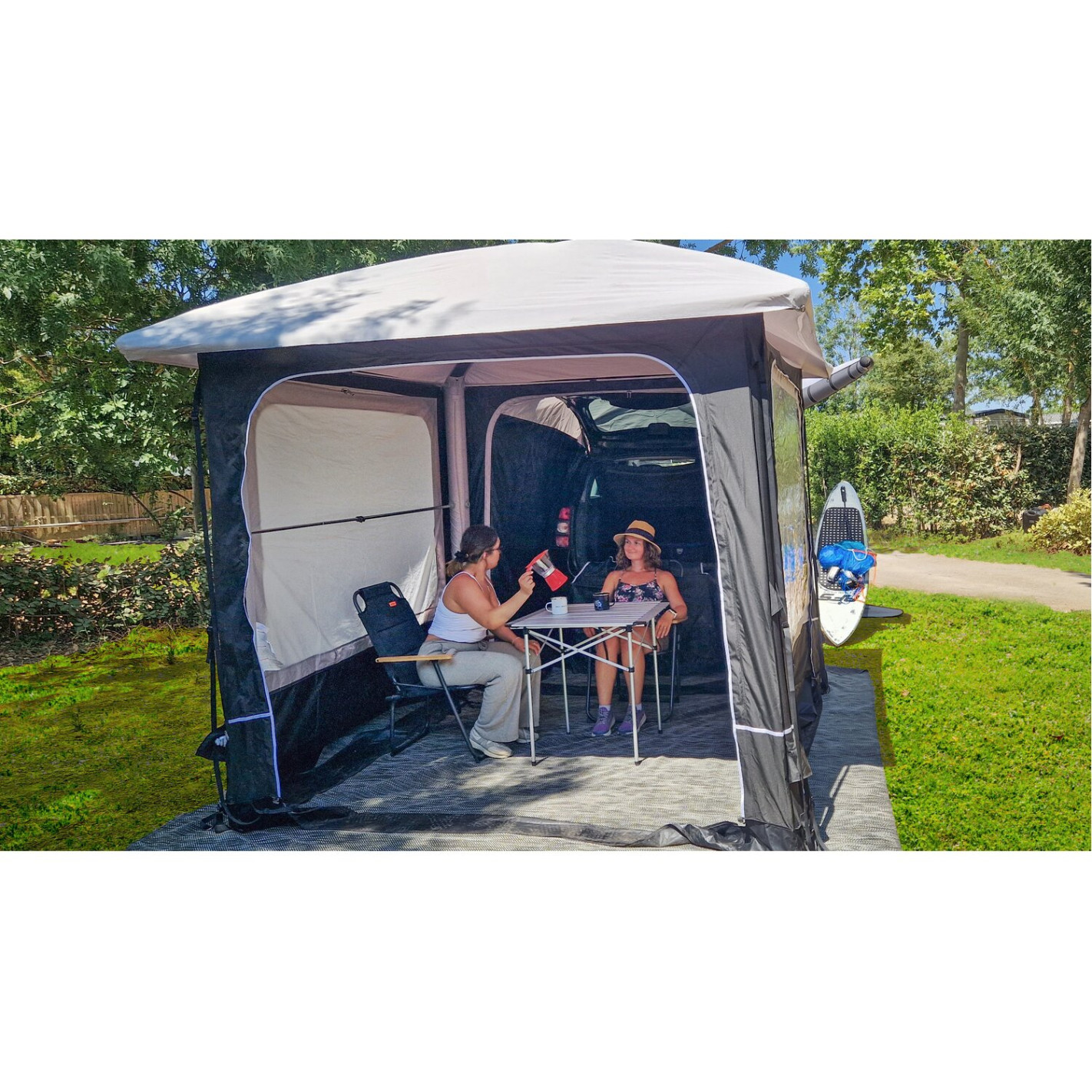 L'annexe chambre du Lodge Air de Soplair, équipée d'une fixation à glissière et d'un système de gonflage simplifié en un seul point, crée un espace confortable et intime, parfait pour se détendre au frais.