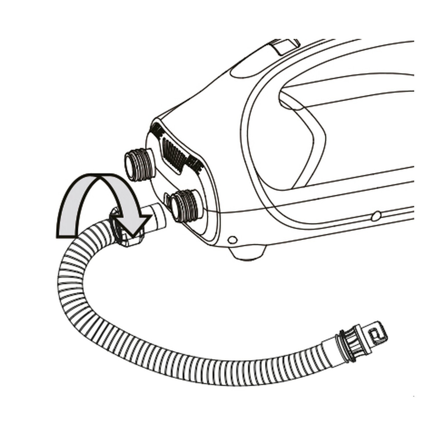Pour dégonfler votre auvent gonflable, ce sont les mêmes étapes à suivre. En revanche, vous devez placer le câble sur la pompe dégonflage.