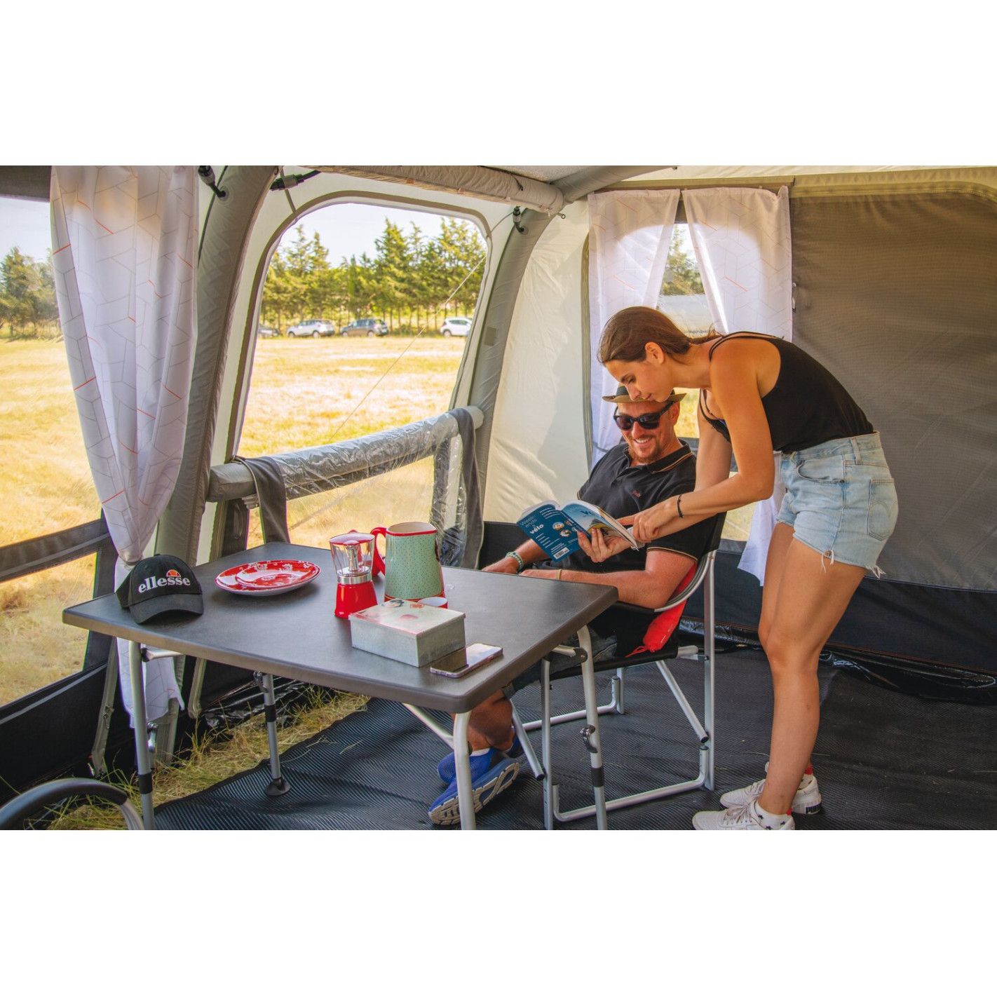 De plus, cet auvent polyvalent peut être transformé en une terrasse couverte en détachant la façade et les côtés, offrant ainsi un espace de vie aéré supplémentaire. La toile Acrytec 270 g/m² assure une filtration efficace des rayons UV, vous permettant de rester au frais tout en étant facile à entretenir. Sa respirabilité garantit une circulation d'air constante pour un confort optimal lors de vos escapades en plein air.