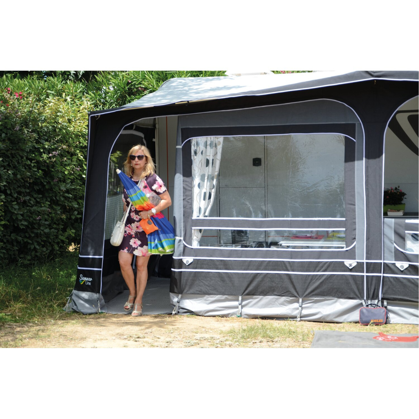 L'auvent traditionnel Jade s'utilise uniquement avec une caravane. Il est idéal pour un long séjour au camping pendant le printemps ou l'été. Cet auvent traditionnel vous offre un espace supplémentaire !