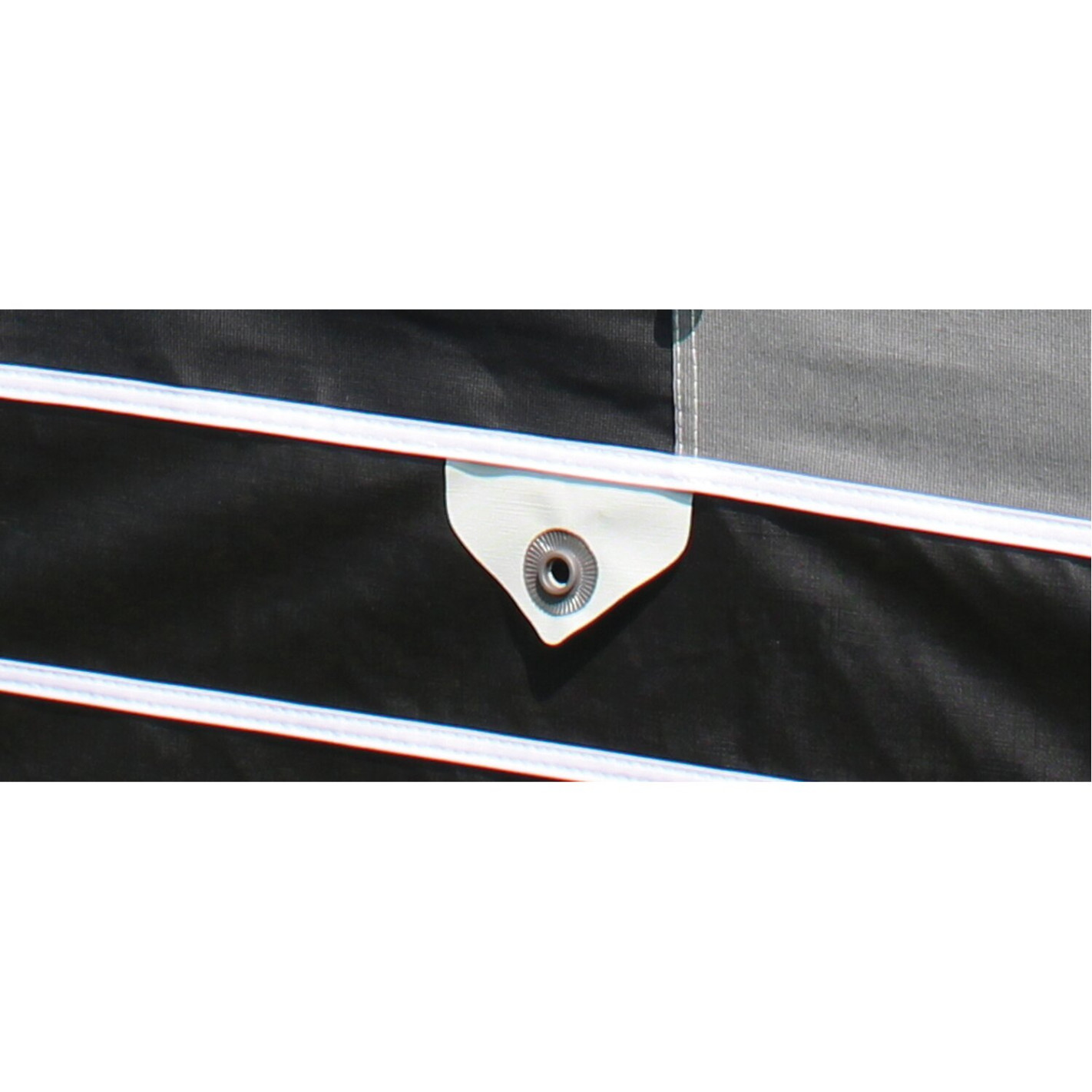L'armature (diamètre 25 mm) avec crochets tampon easyFix SummerLine, leviers de serrage rapide et angles articulés en acier se monte facilement. De plus, tout le nécessaire de fixation est fourni (piquets et élastiques), mais aussi 4 haubans anti-tempête sur la façade, 2 sur chaque côté et un œillet attache sangle anti-vent sur chaque côté. Pour le retour de vos vacances, il vous suffit de ranger l'auvent dans ses sacs de transport. Pratique !