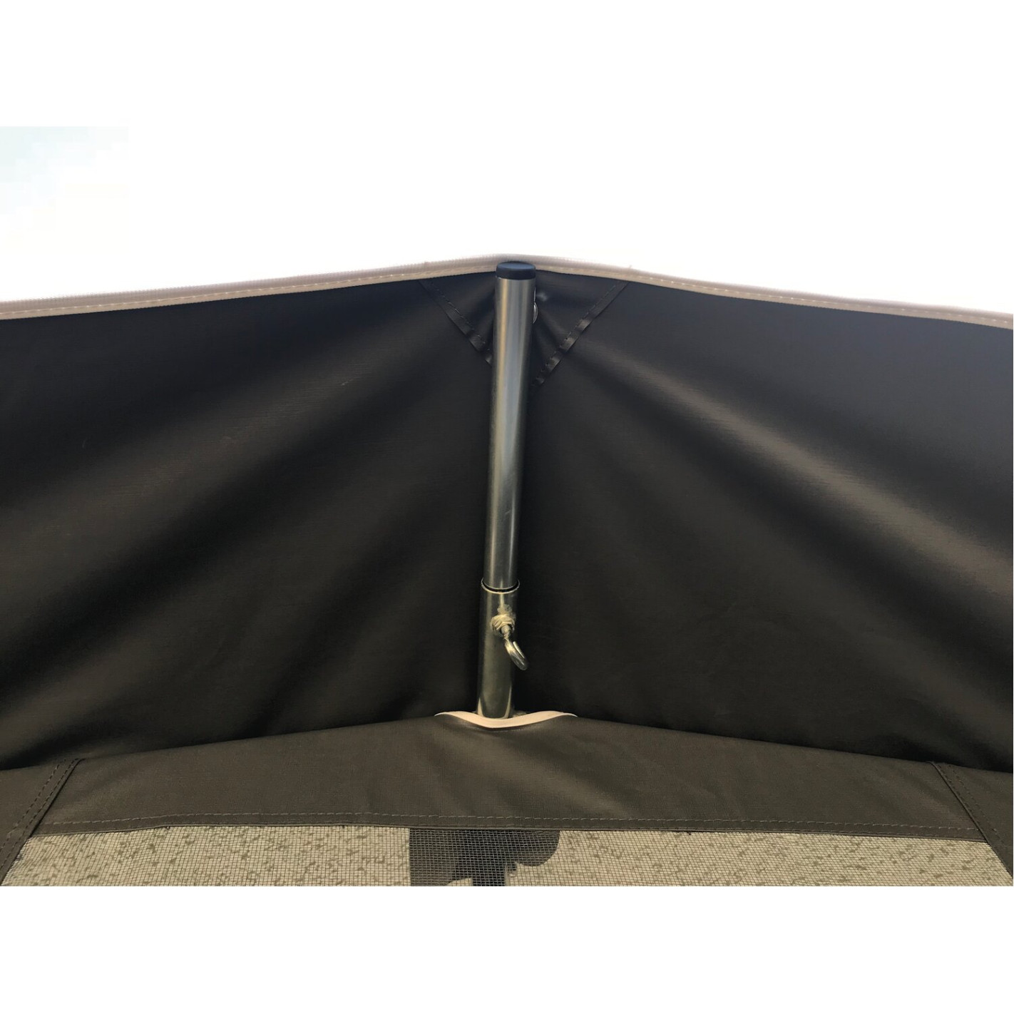 Côté pratique, tout est modulable : panneaux avant et latéraux amovibles, moustiquaires intégrées, rideaux pour l’intimité... De quoi ventiler ou protéger selon vos envies et la météo. Le toit en toile PVC double face et les parois en polyester renforcé garantissent un entretien facile.