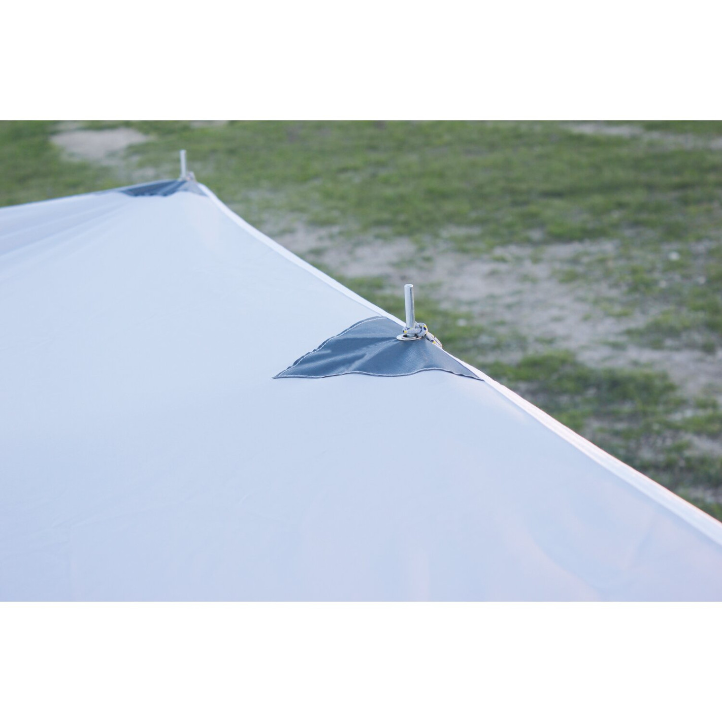 Matière : Polypro 280 g/m2. Profondeur : 250 cm. Fourni avec mâts aluminium (ajustables de 1,80 à 2,50 m) et sangles de fixation.