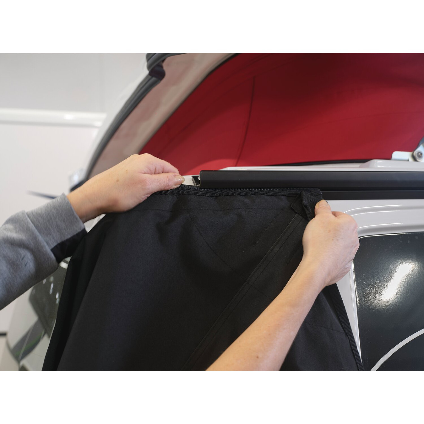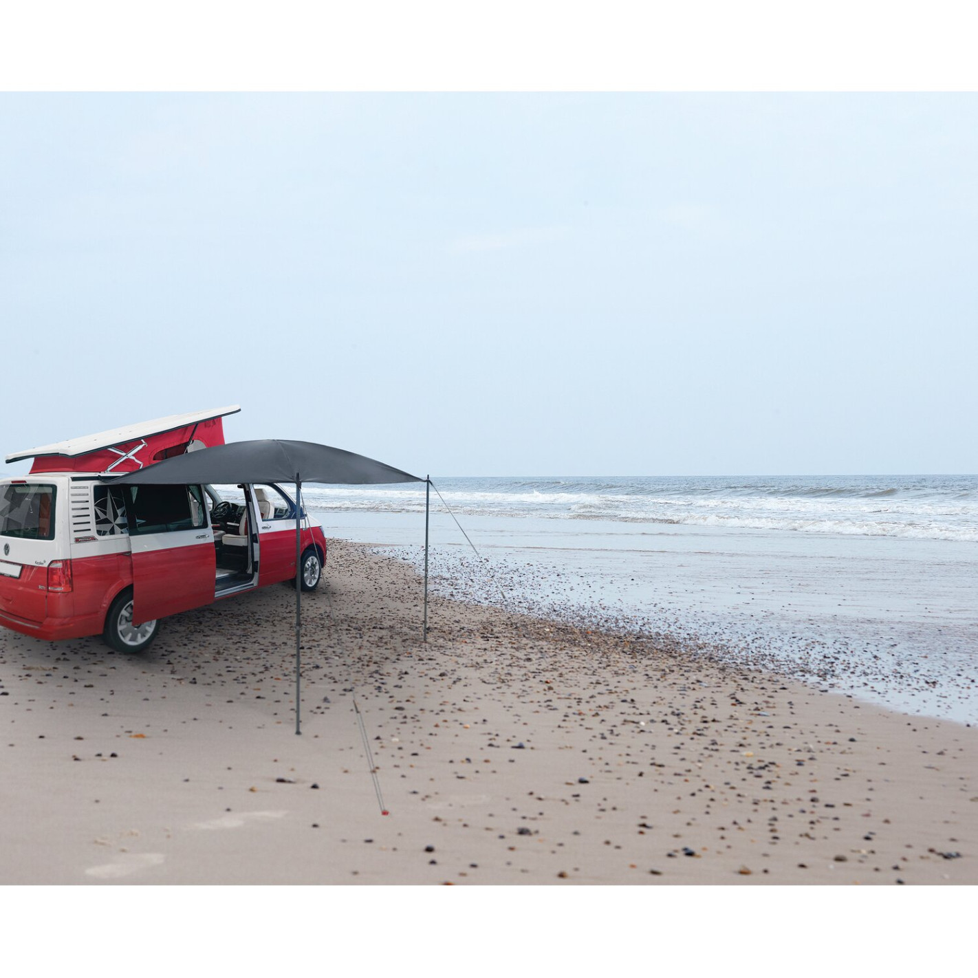La solette Asa vous offre la possibilité de profiter de l'extérieur tout en étant protégé en vous procurant de l'ombre. Avec un design élégant, la solette Asa se destine aux vans et véhicules du même type dont la hauteur de rail se trouve entre 180 et 196 cm. Par exemple, elle convient parfaitement à un VW California ! Elle peut aussi s'adapter à une caravane Eriba Touring.