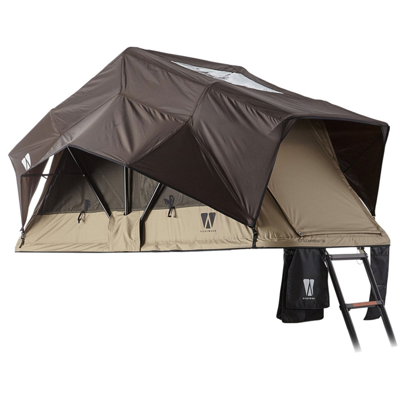 La tente de toit Little Bamboo 125 Gen.2 de Vickywood est une solution légère, compacte et confortable, idéale pour les petits véhicules. Pesant seulement 45 kg, elle s’adapte à la majorité des toits et offre un espace de couchage généreux une fois dépliée.