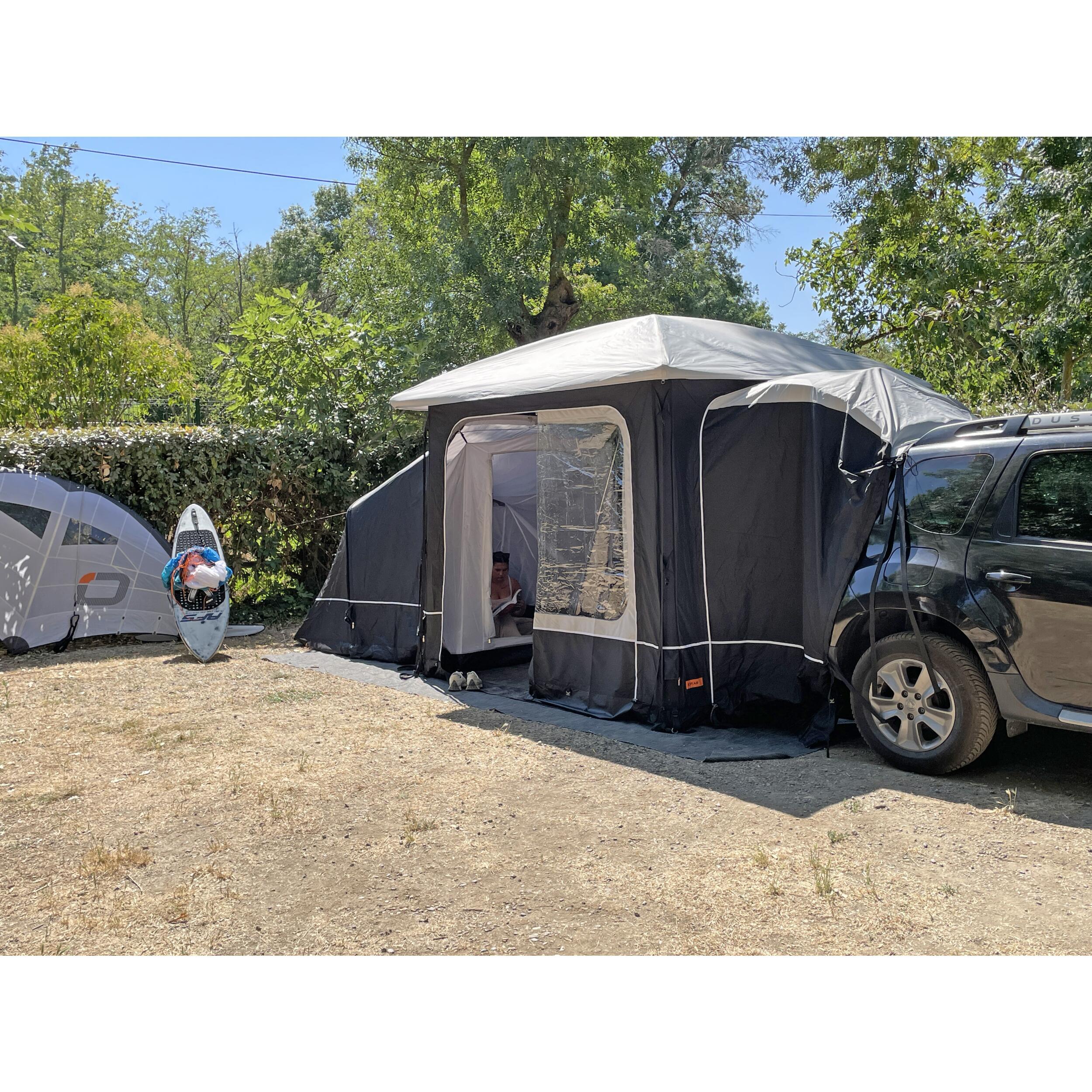 La chambre annexe pour l'abri Lodge Air de Soplair, équipée d'une fixation par glissières zippées et d'un système de gonflage en un seul point, crée un espace confortable et intime, parfait pour profiter d'un moment de fraîcheur et de détente.