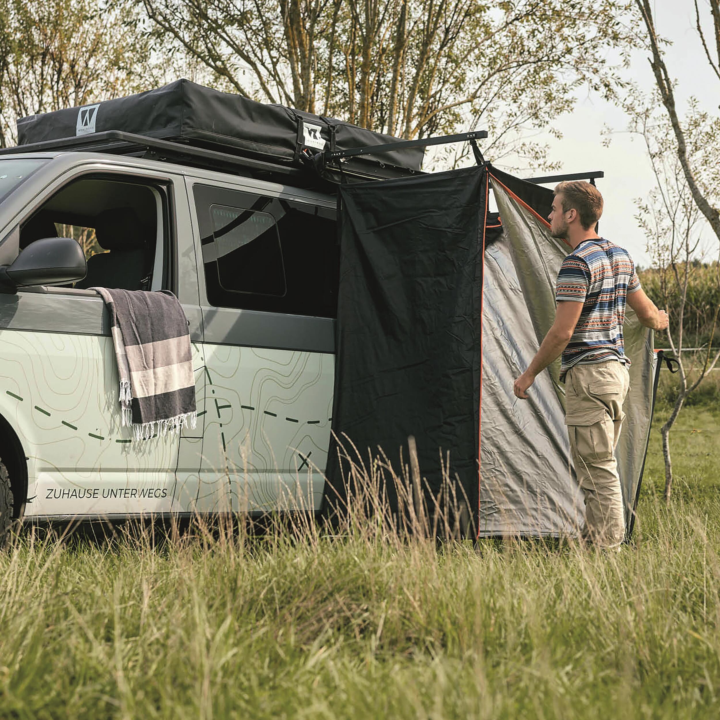 Compacte, elle se transporte aisément et s’adapte à divers usages en plein air, comme vestiaire ou toilette d’appoint.