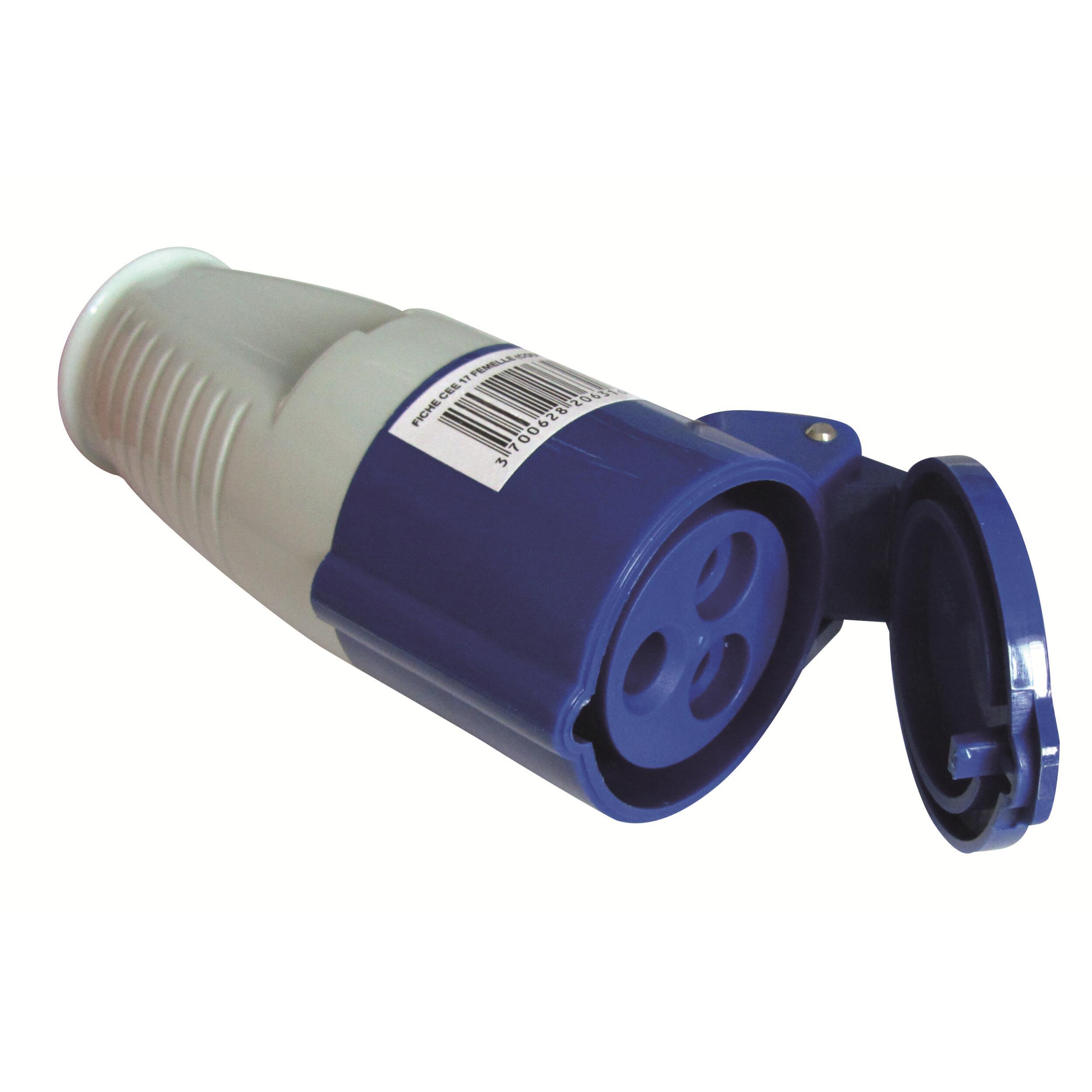 Fiche femelle type normes CEE P17 pour camping-car. Cet adaptateur est parfait pour le branchement sur socle 220 Volts de votre véhicule de loisirs : caravane, camping-car, fourgon aménagé ou bateau vers une borne de raccordement 220 volts d'un camping, d'une aire de service camping-car ou d'un port (et ainsi faire fonctionner vos appareils qui fonctionnent en 220 volts). Convient également pour faire des rallonges. Intensité : 16 ampères. protection étanchéité : IP44.