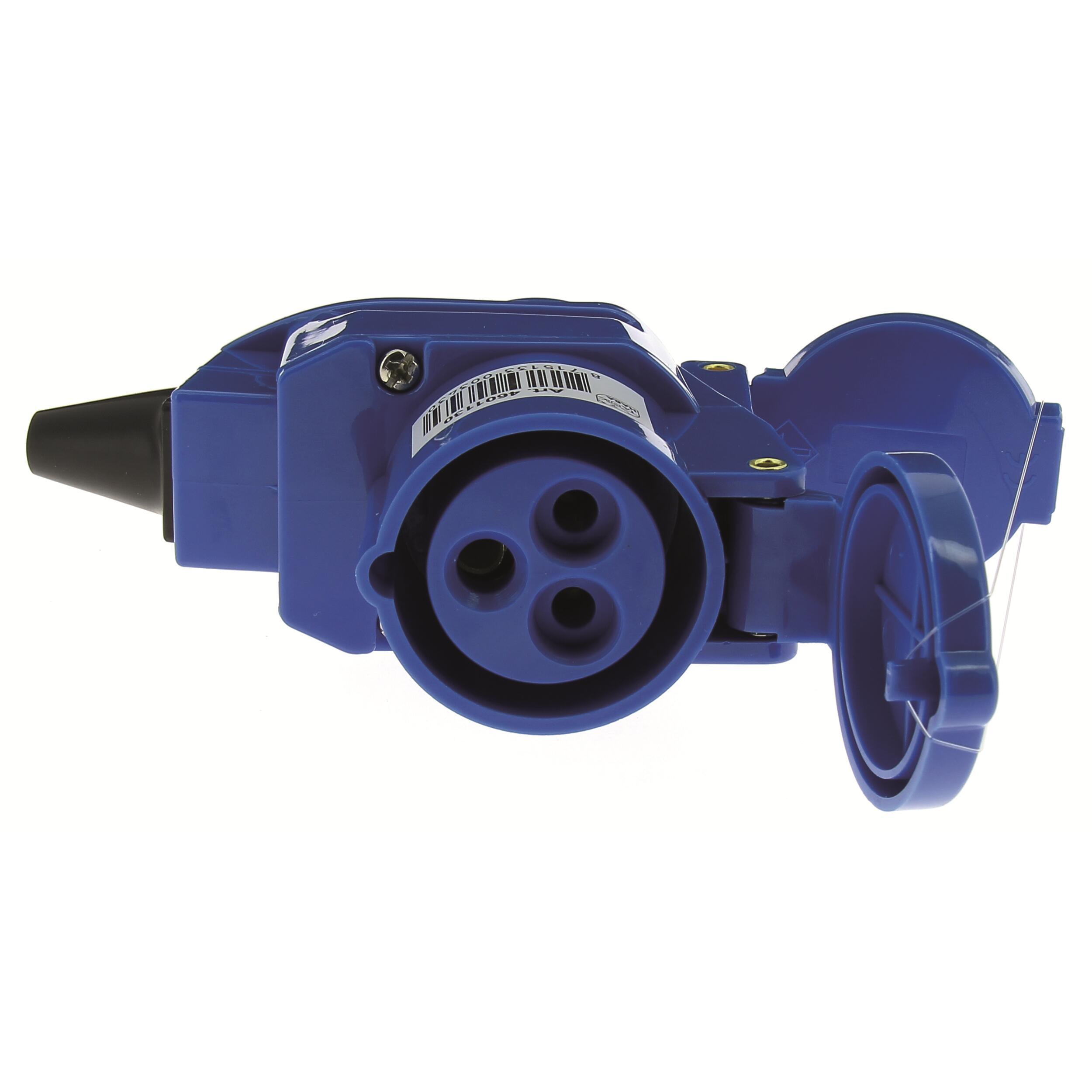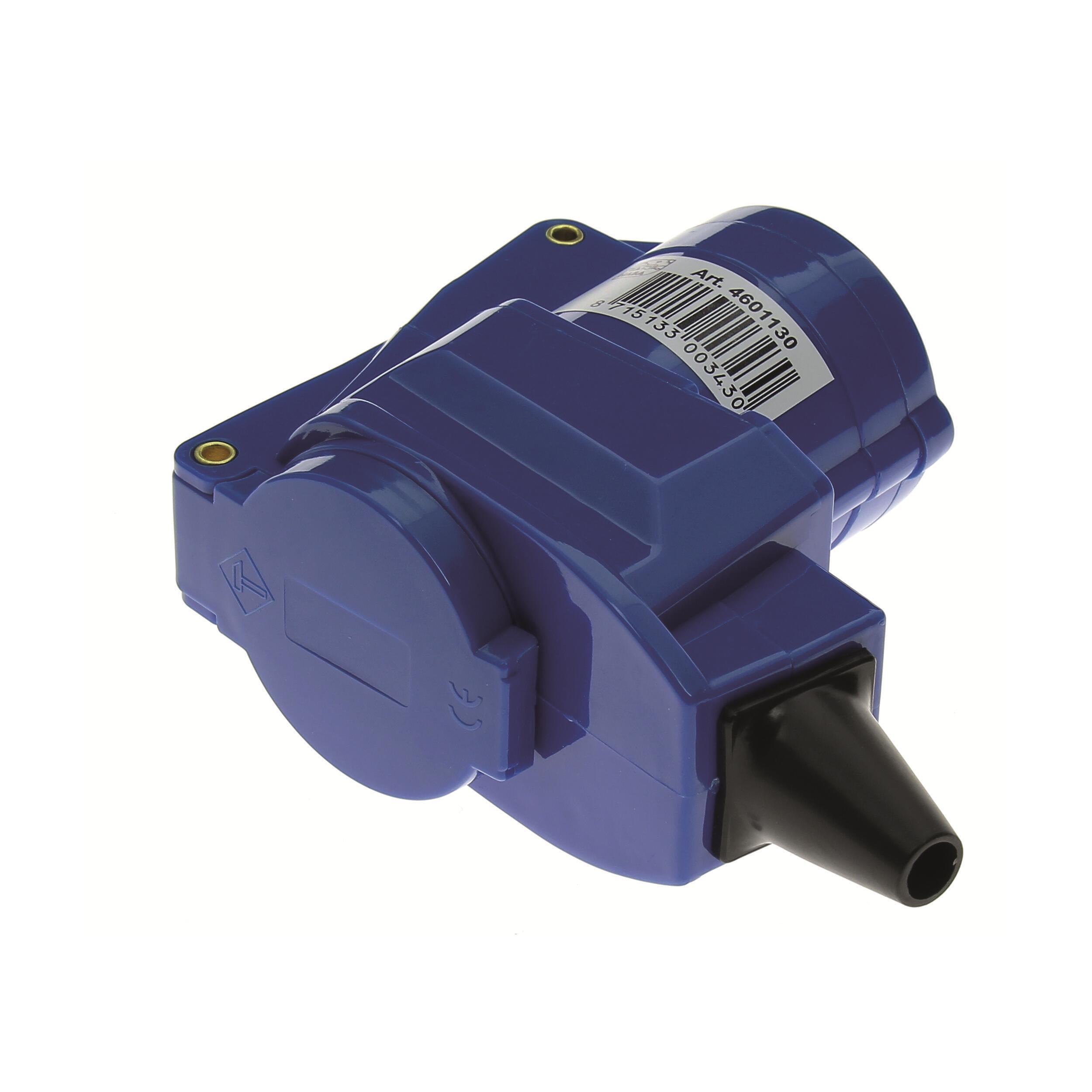 Fiche voleuse de raccordement pour camping-car. Cette fiche électrique a été spécialement conçue pour les auvents de caravane. Elle permet de laisser une prise de raccordement supplémentaire pour brancher une fiche 220 volts de type Schuko (standard français), ce qui vous permettra de raccorder vos appareils ménagers: réfrigérateur d'appoint, téléviseur. Le raccordement disponible à l'arrière du système est protégé par un couvercle. Intensité : 16 ampères. protection étanchéité : IP44.