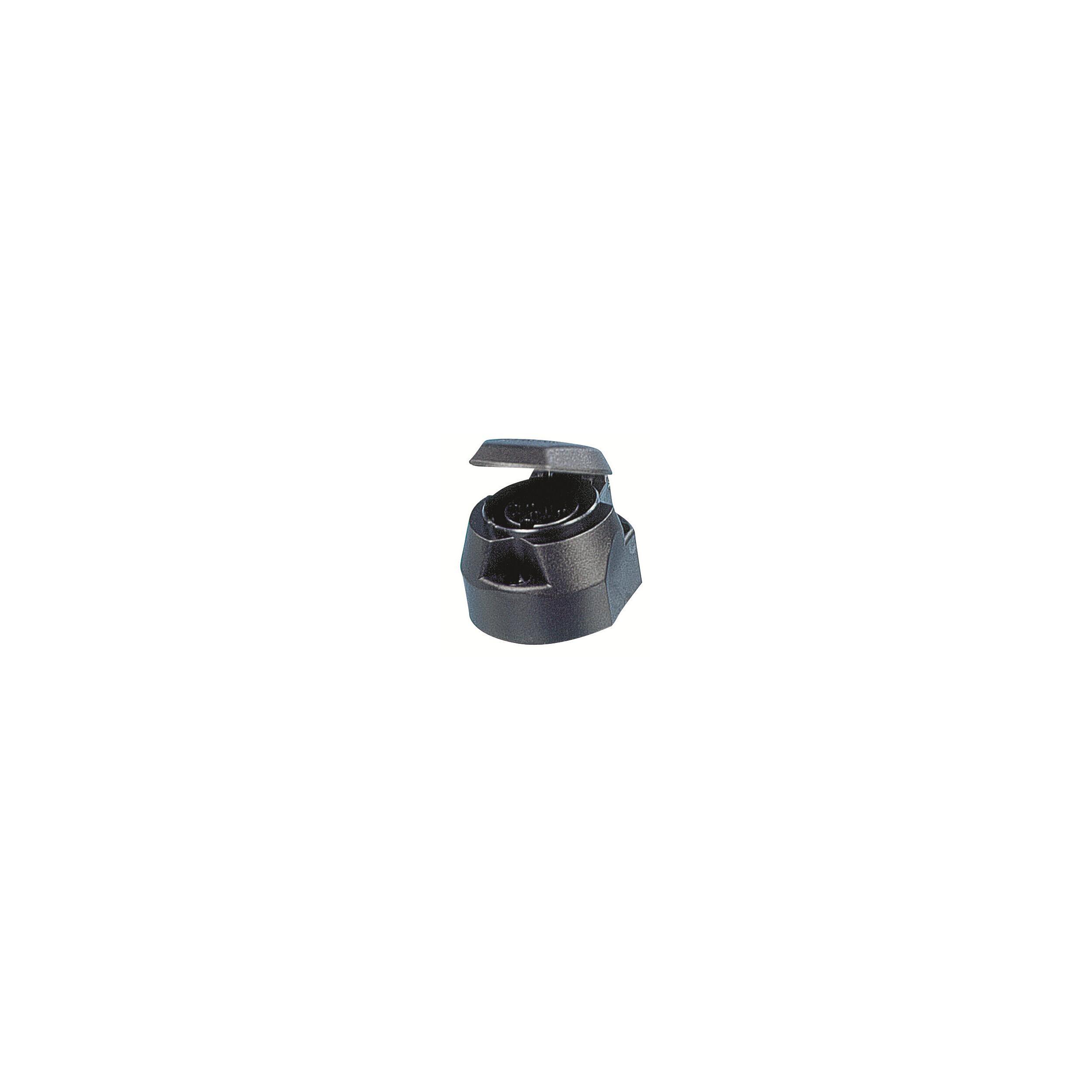 Prise/Socle femelle 13 plots pour la liaison voiture, caravane. Tension 12 Volts. Cet accessoire électricité a été spécialement conçu pour assurer la liason électrique entre votre véhicule : voiture, SUV, fourgon et votre caravane. Le socle 13 broches comprend les raccordements : 1. Indicateur de direction gauche, 2.Feu de brouillard, 3.Masse pour contact 1 à 8, 4. Indicateur de direction droit, 5.Eclairage arrière droit, 6. Feu stop, 7.Eclairage arrière droit, 8. feu de recul, 9.+ Permanent, 10. Recharge batterie auxiliaire, 11. Non connecté, 12. Non connecté, 13. Masse pour contacts 9 à 12.