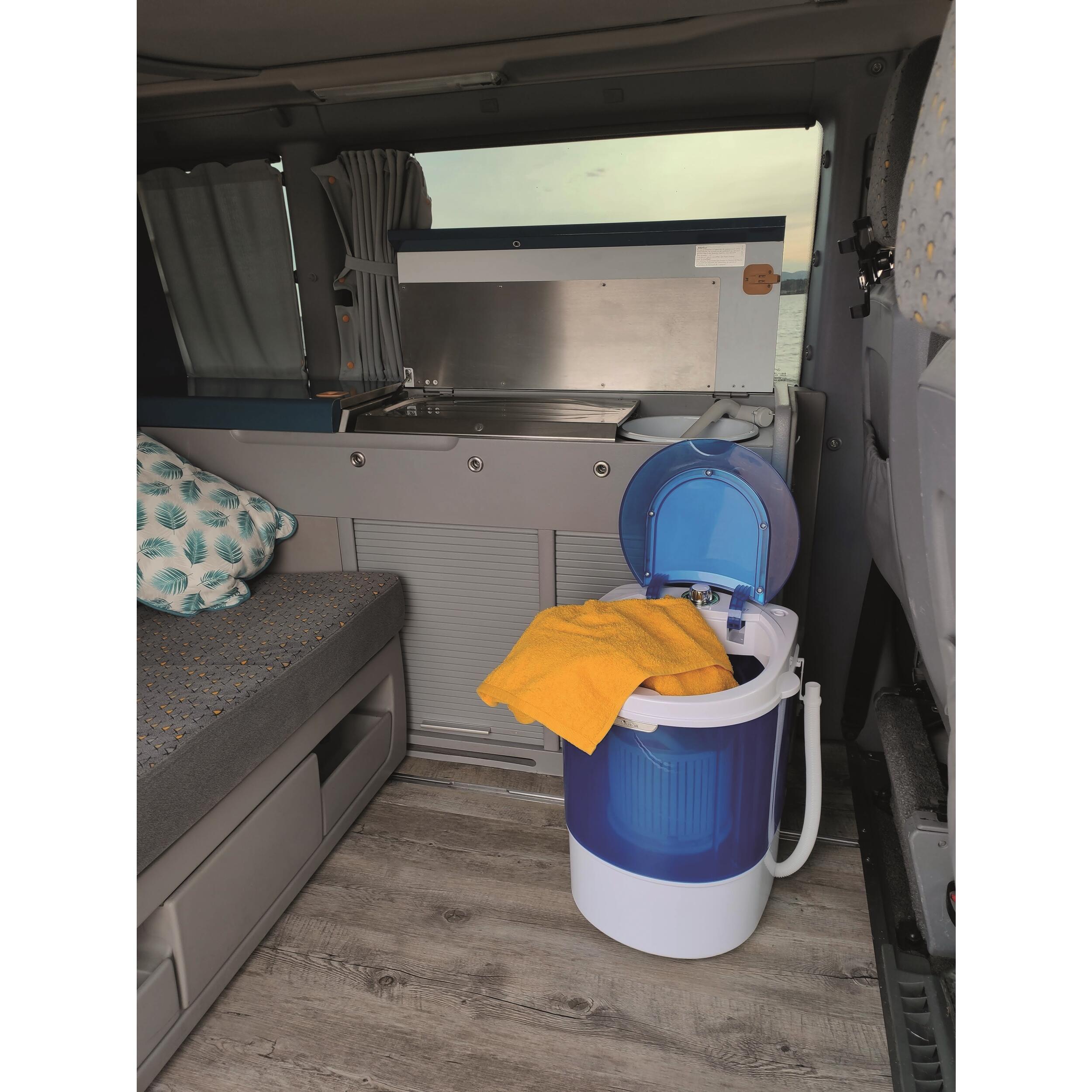 La petite machine à laver est bien pratique lors d'un séjour au camping ou lors de voyages en véhicules de loisir (camping-car, caravane, van, fourgon aménagé, bateau...). Elle peut vous laver des vêtements en seulement 15 minutes !