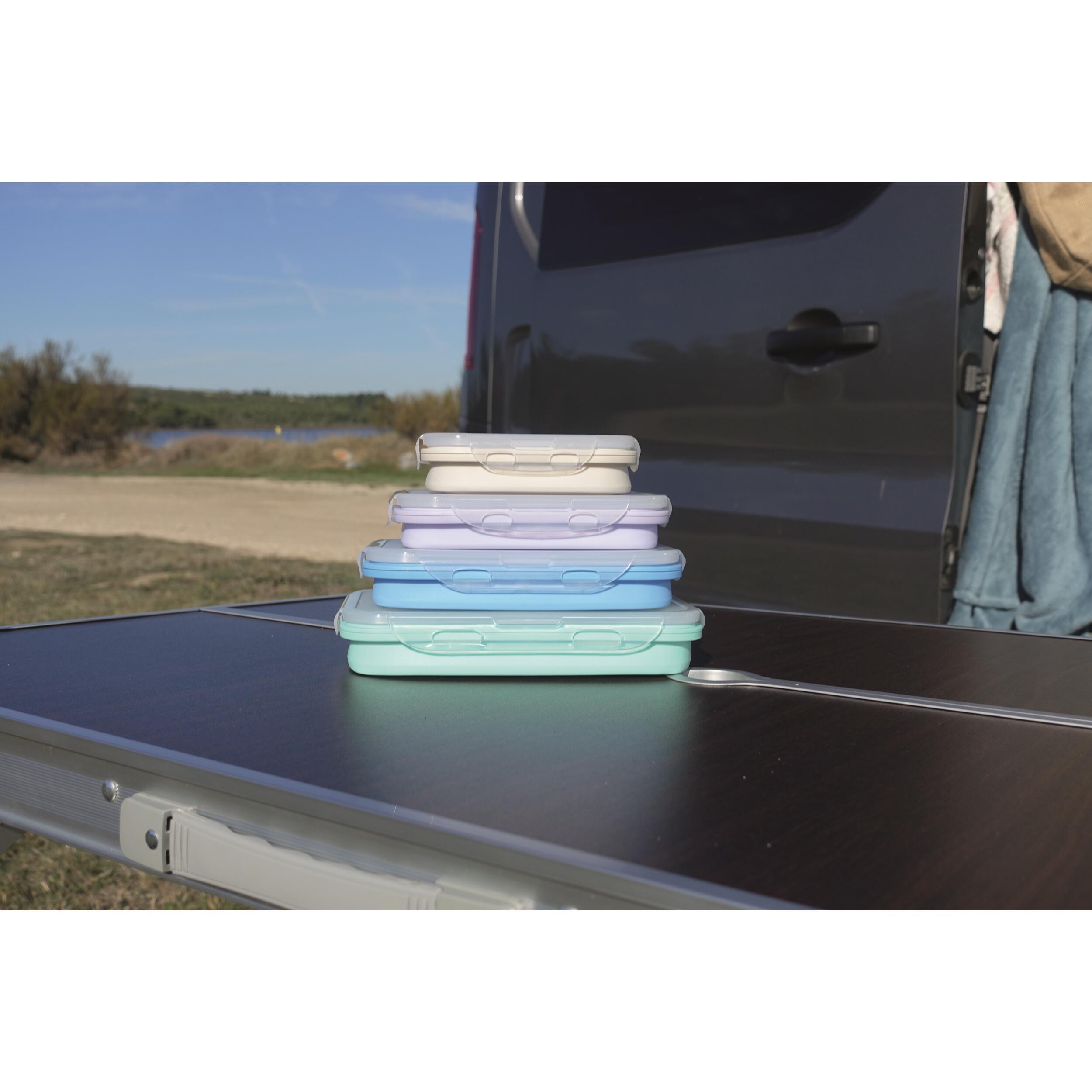 Les boîtes de conservation sont très pratiques lorsque vous êtes en voyage au camping ou avec votre véhicule de loisir (camping-car, bateau, caravane, van, fourgon aménagé...). En effet, en étant rétractables, les boîtes en silicone hermétiques sont très peu encombrantes. Cette capacité rétractable est possible grâce au silicone. Un vrai gain de place !