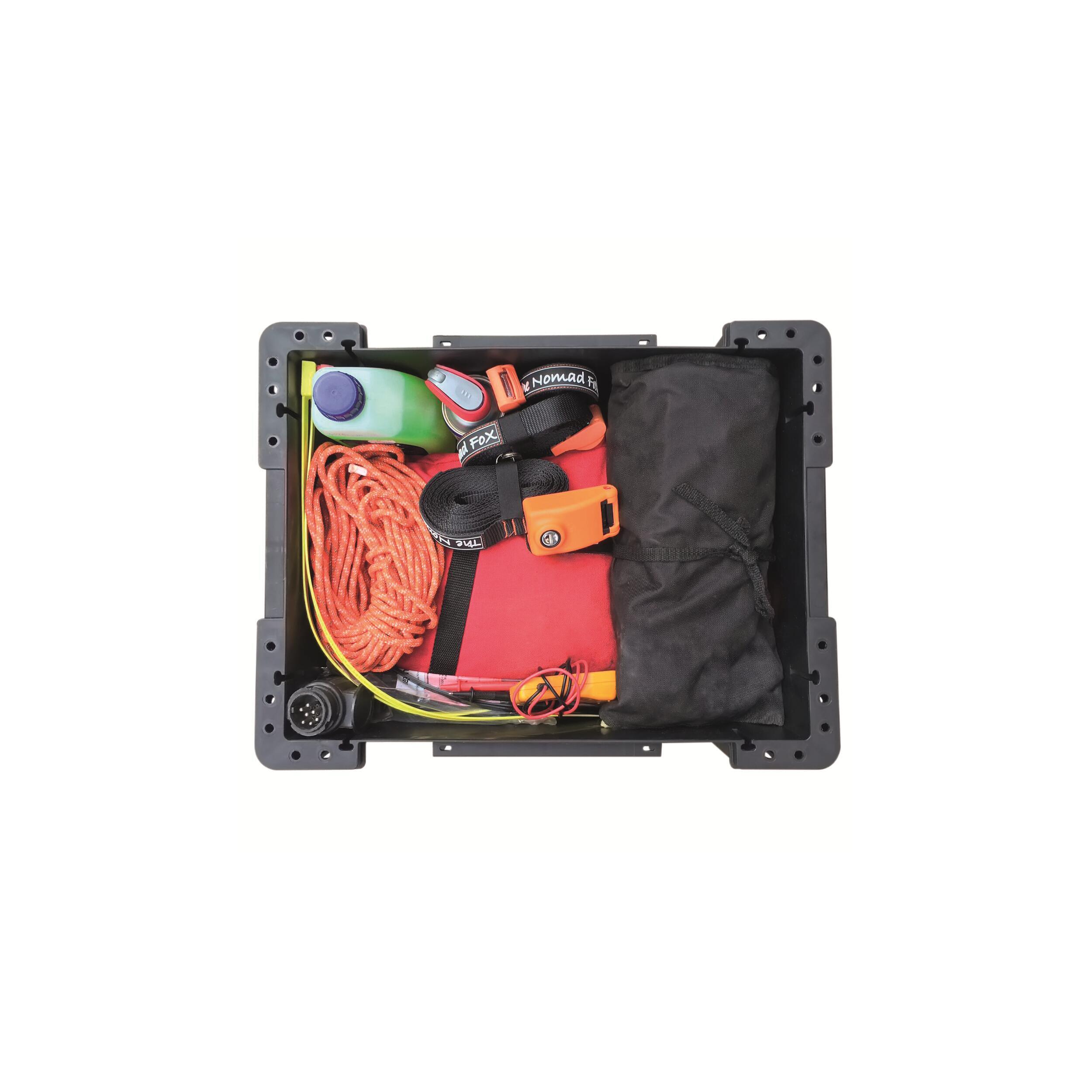 La caisse de rangement The Nomad Fox est conçue pour les aventuriers à la recherche d'une solution de stockage robuste et fiable. Que vous soyez en voyage, en randonnée ou en plein road trip, cette caisse protège efficacement votre matériel des chocs, de l'eau, de la poussière, et même des températures extrêmes. Fabriquée en polypropylène, cette caisse est extrêmement résistante aux impacts et conserve ses caractéristiques même à basse température. La surface extérieure légèrement texturée est même résistant aux rayures. Astucieux !
