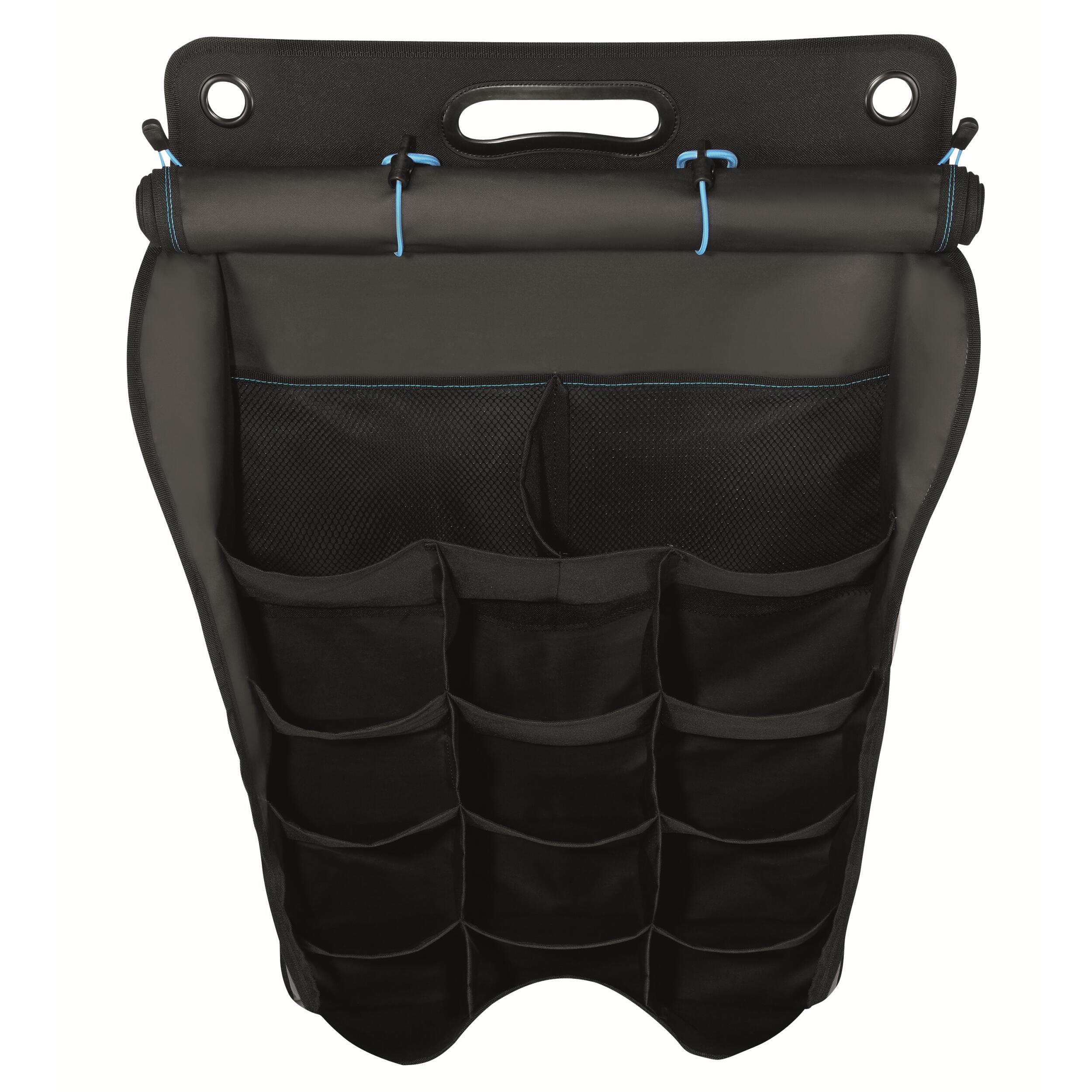 Avec ses 16 poches polyvalentes, cet organiseur vous offre une multitude d'astuces pour organiser vos affaires de manière simple et efficace avec un espace de rangement. Le couvercle protège vos affaires de voyage. Les deux cordes élastiques sur les côtés sont idéales pour accrocher facilement un rouleau d'essuie-tout ou d'autres objets indispensables. Lorsque vous ne l'utilisez pas, il se plie facilement pour gagner de la place.