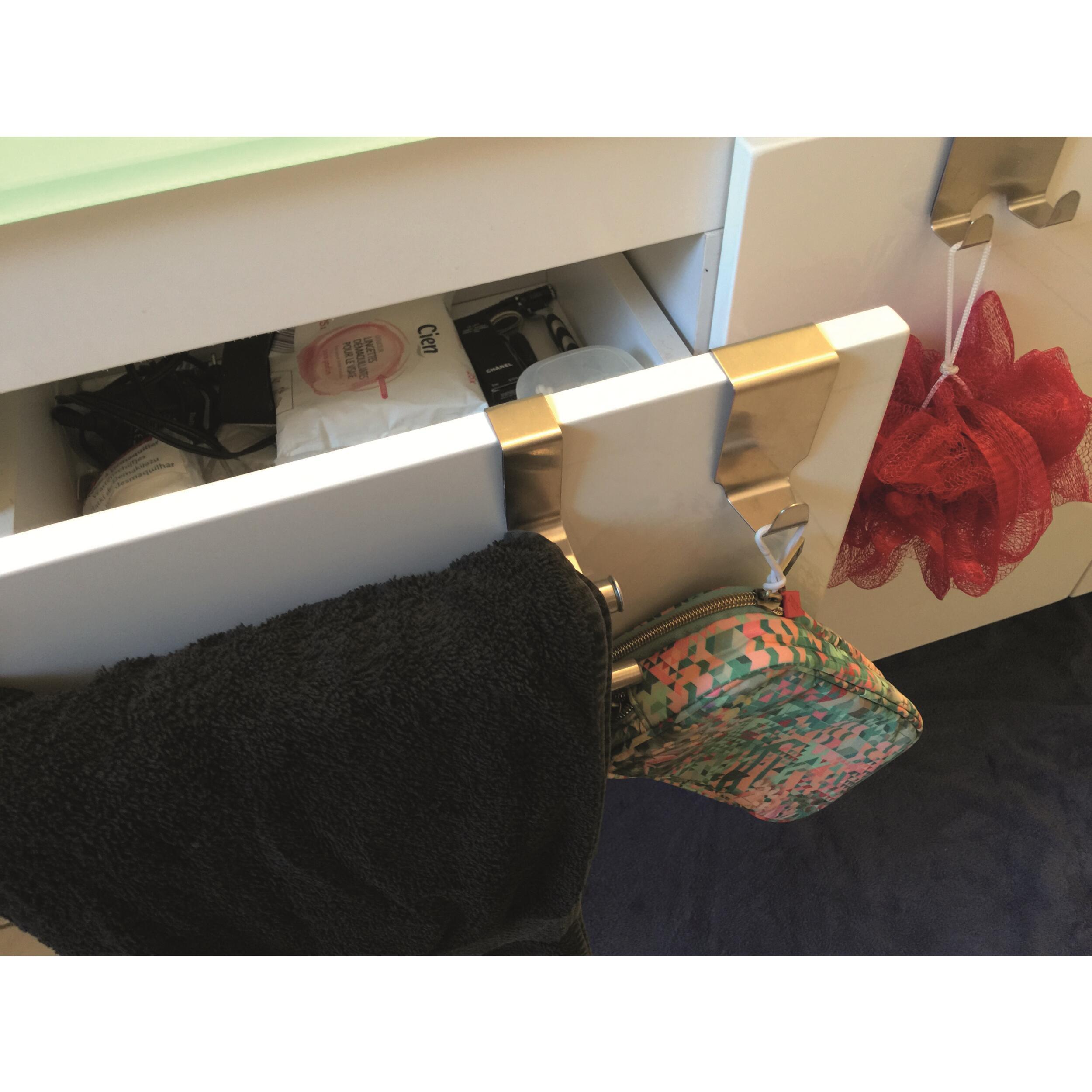 Vous pouvez alors adapté votre rangement en fonction de vos ustensiles et accessoires. Par exemple, vous pouvez accrocher une serviette de salle de bain sur la patère. Très pratique comme accessoires de salle de bain !