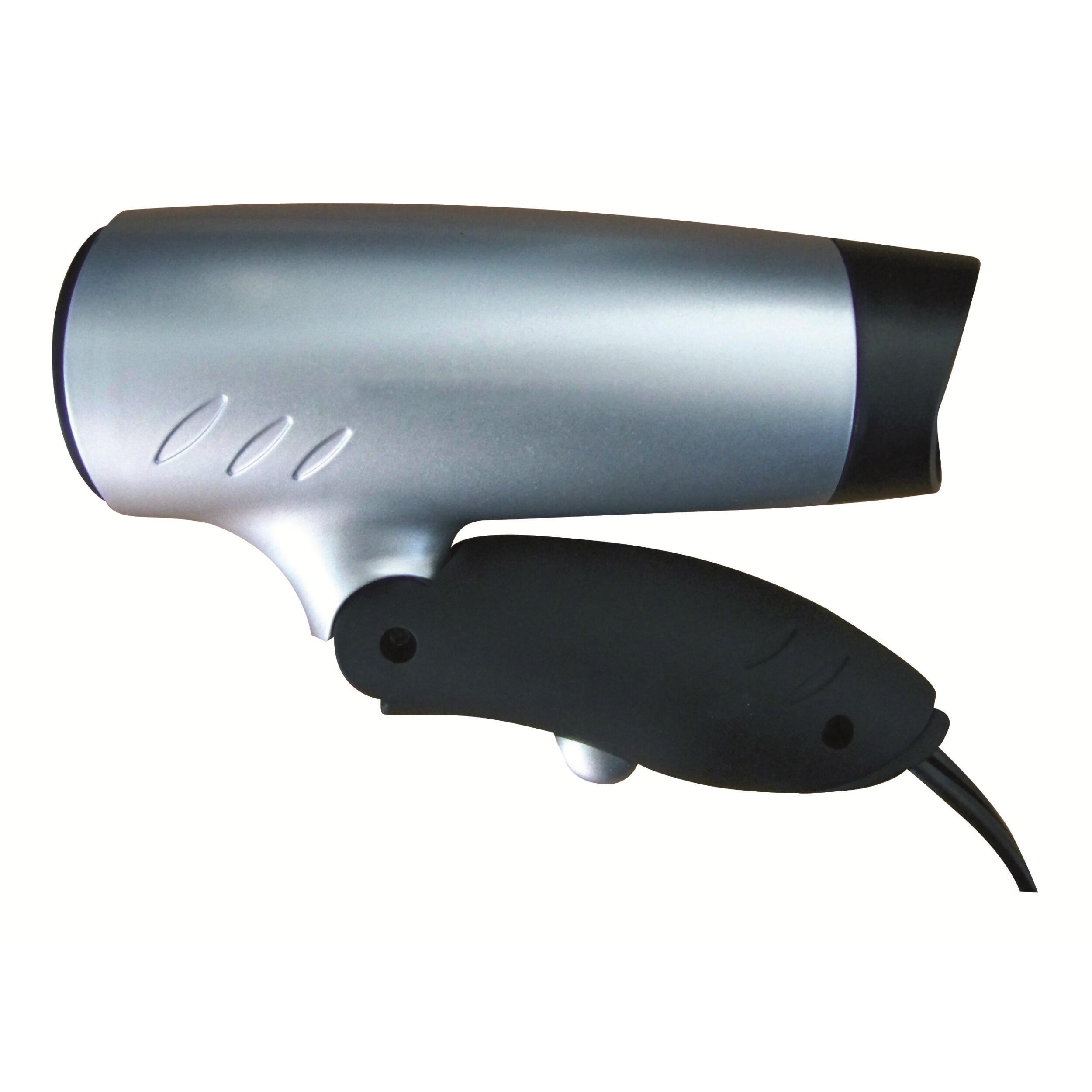 Sèche-cheveux 12 volt spécial camping-car. Ce sèche-cheveux est idéal pour une utilisation en véhicule de loisirs : camping-car, caravane, fourgon aménagé, mobil-home ou même bateau. Il est design, léger et compact grâce à son manche ergonomique repliable ce qui vous permettra d'avoir un encombrement minimum. Vous pourrez vous sécher les cheveux en fonction "chaud" ou "froid" en vous branchant simplement à la prise allume-cigare du véhicule (câble d'1,50 m). Le séche-cheveux possède également une sécurité thermo-couple et sa températue n'excède pas 60°C. Puissance : 70W.