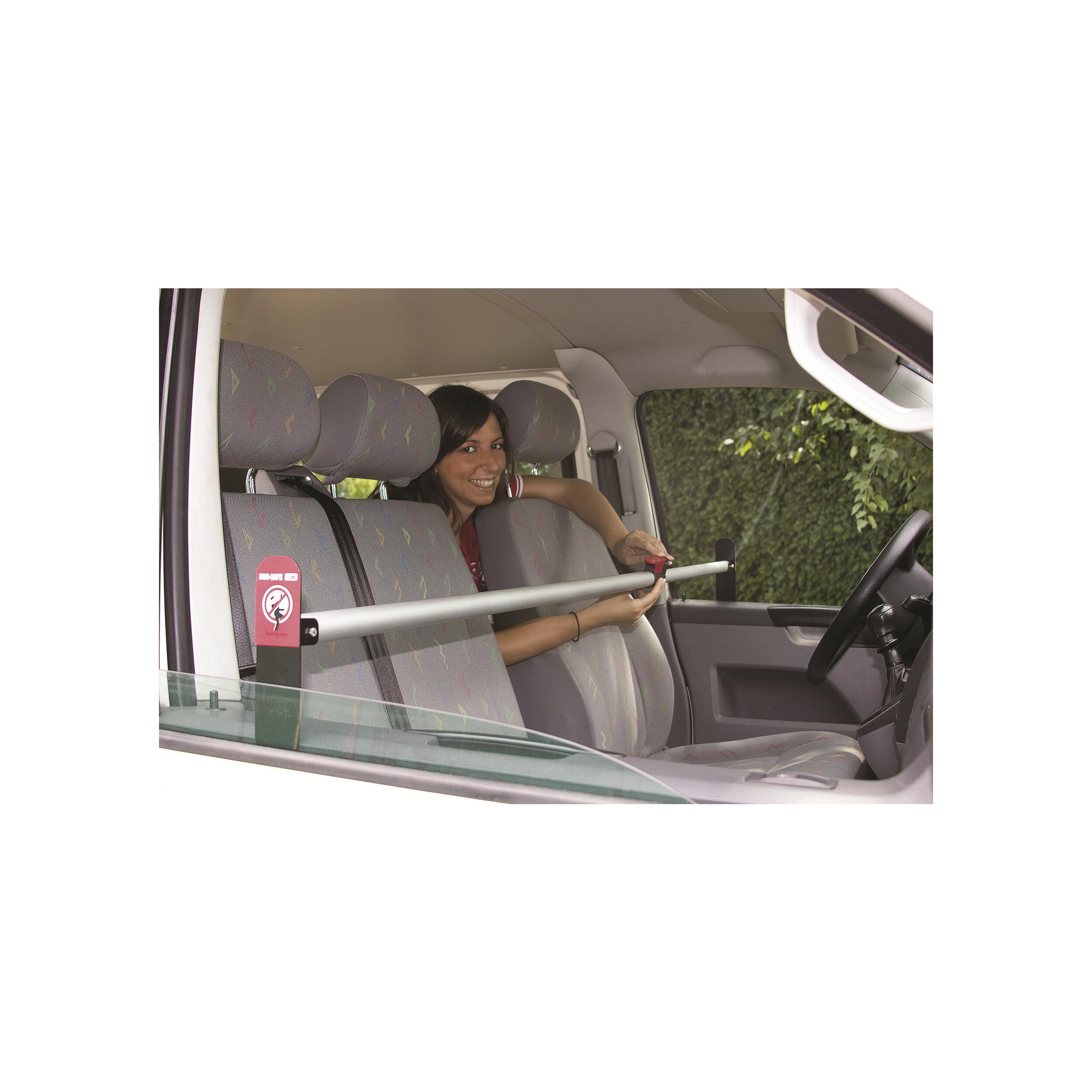 Le kit de sécurité Duo Safe Pro sert à protéger les portes de cabine. Il s'agit d'un système anti-intrusion. Il est composé d'une barre de sécurité télescopique avec crochets pour bloquer les portes.
