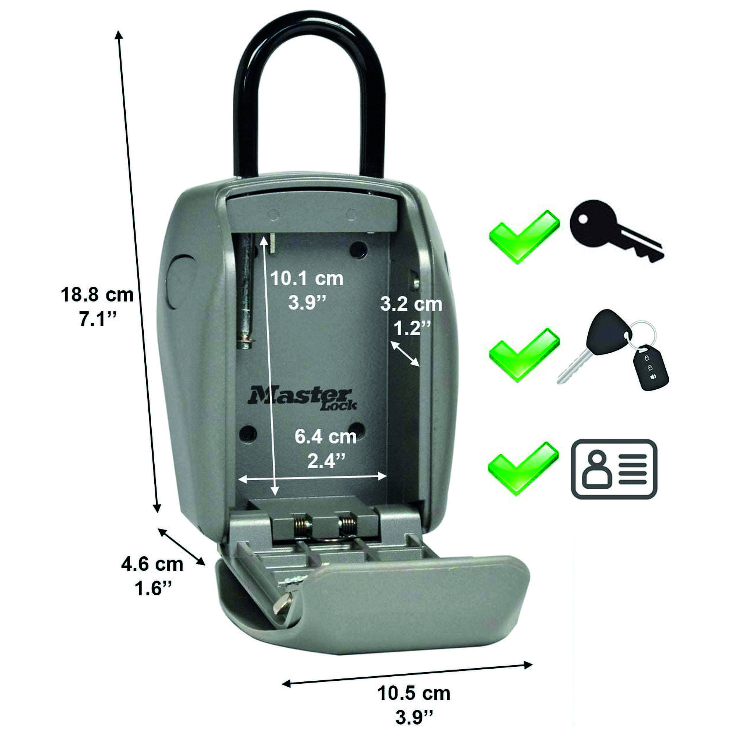 Le coffre de rangement sécurisé de la marque Masterlock est parfait pour y ranger vos clés avec un format L.