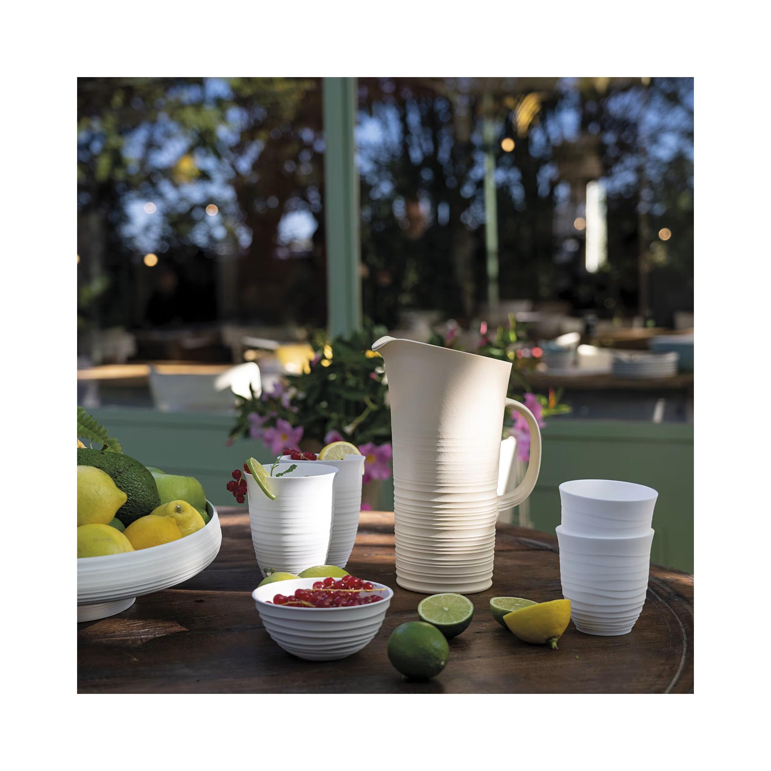 Écologique et élégante, la carafe Tierra de Guzzini est fabriquée en plastique recyclé et conçue pour un usage quotidien avec sa capacité de 1,7 L et son bec verseur pratique. Fabriquée en Italie, elle allie design raffiné, durabilité et engagement responsable pour sublimer votre table