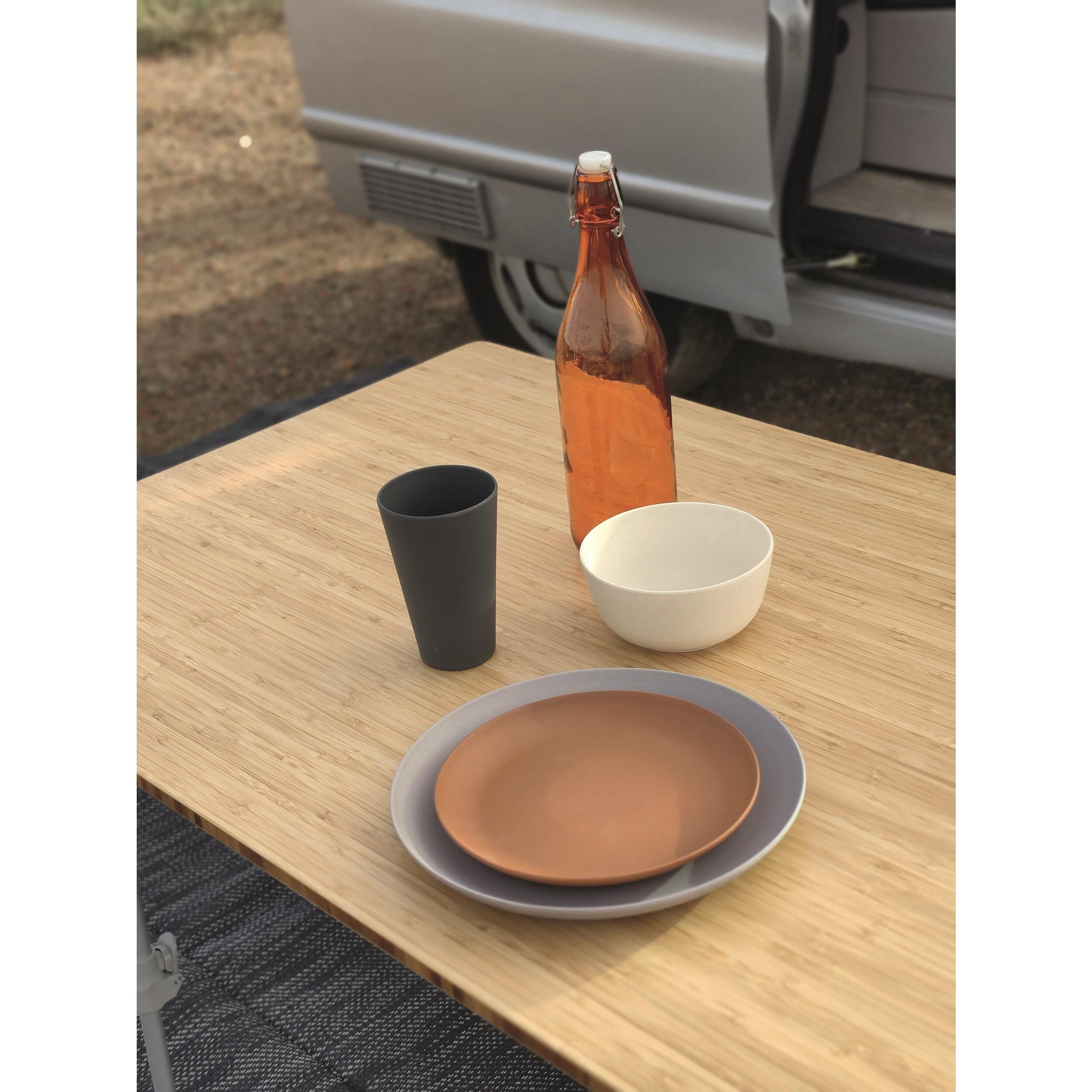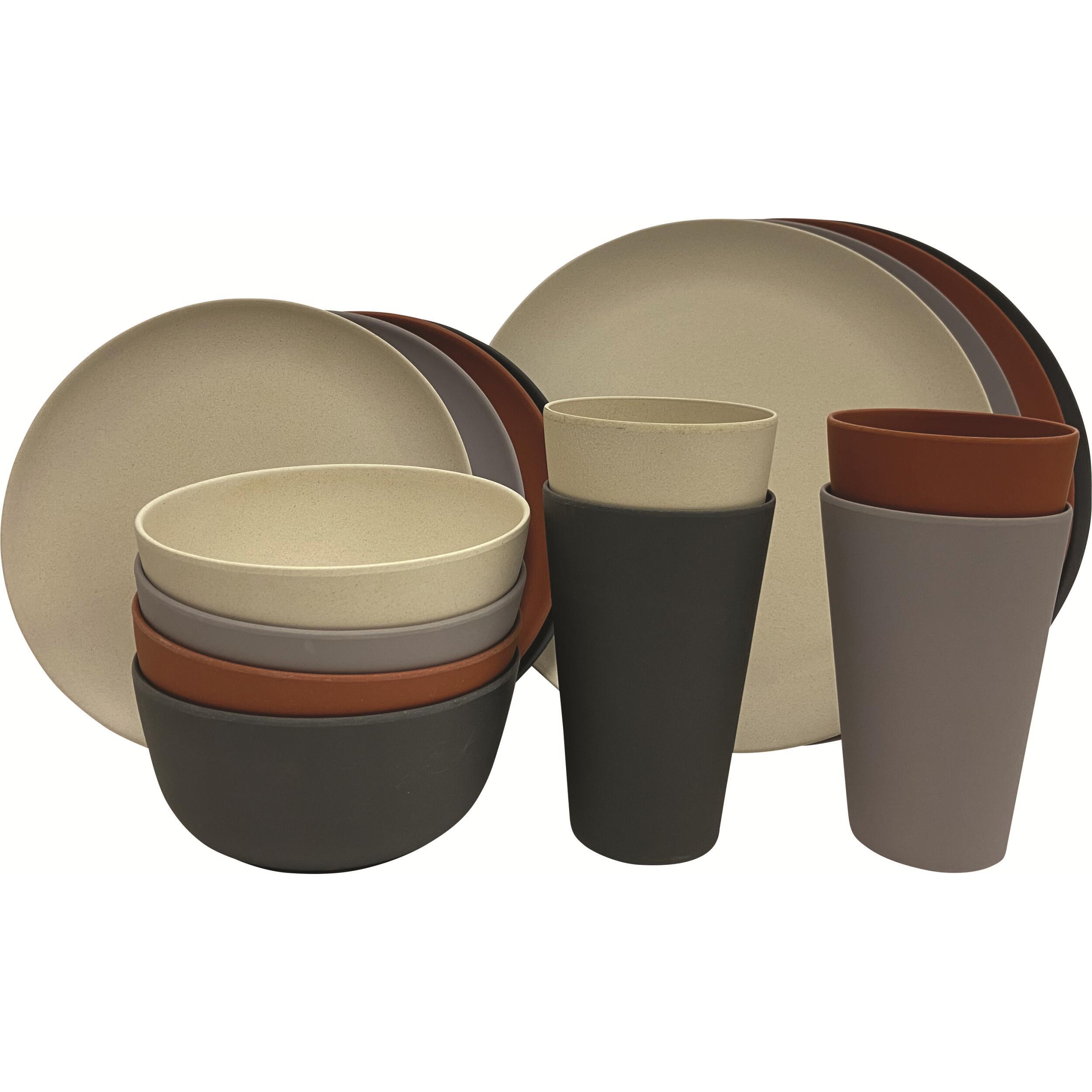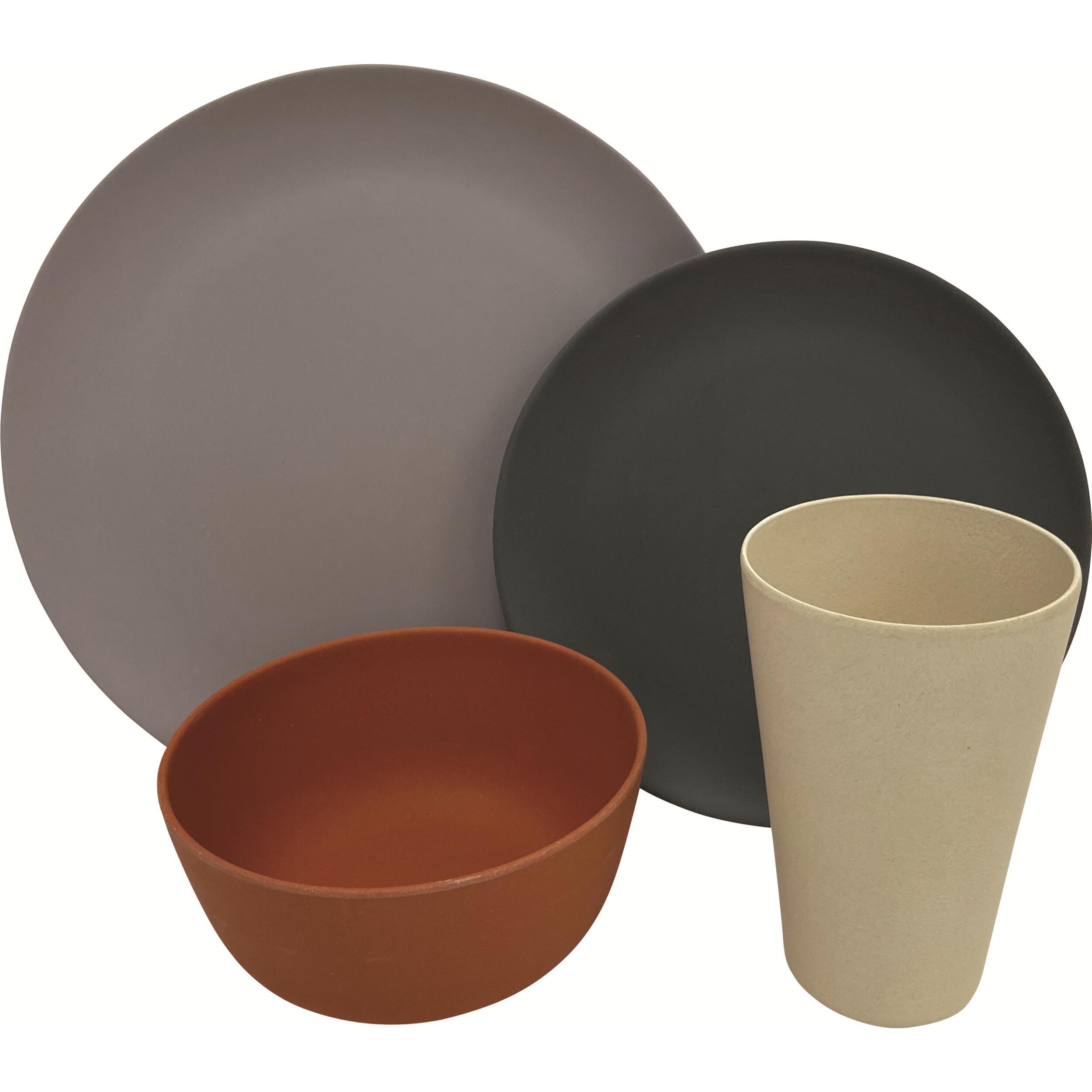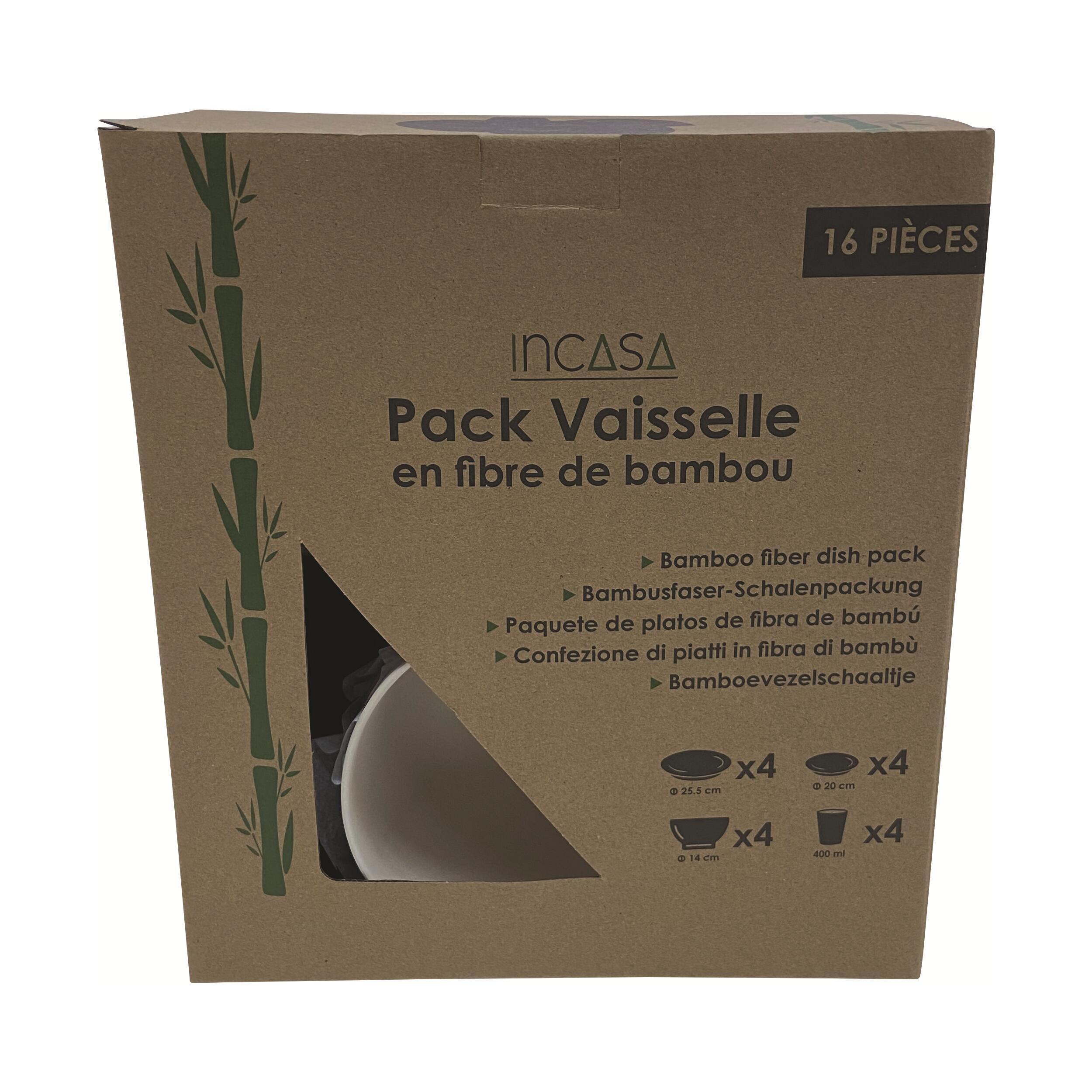 L'ensemble de vaisselle pour 4 personnes de la marque Incasa est composé de 16 pièces en fibre de bambou :