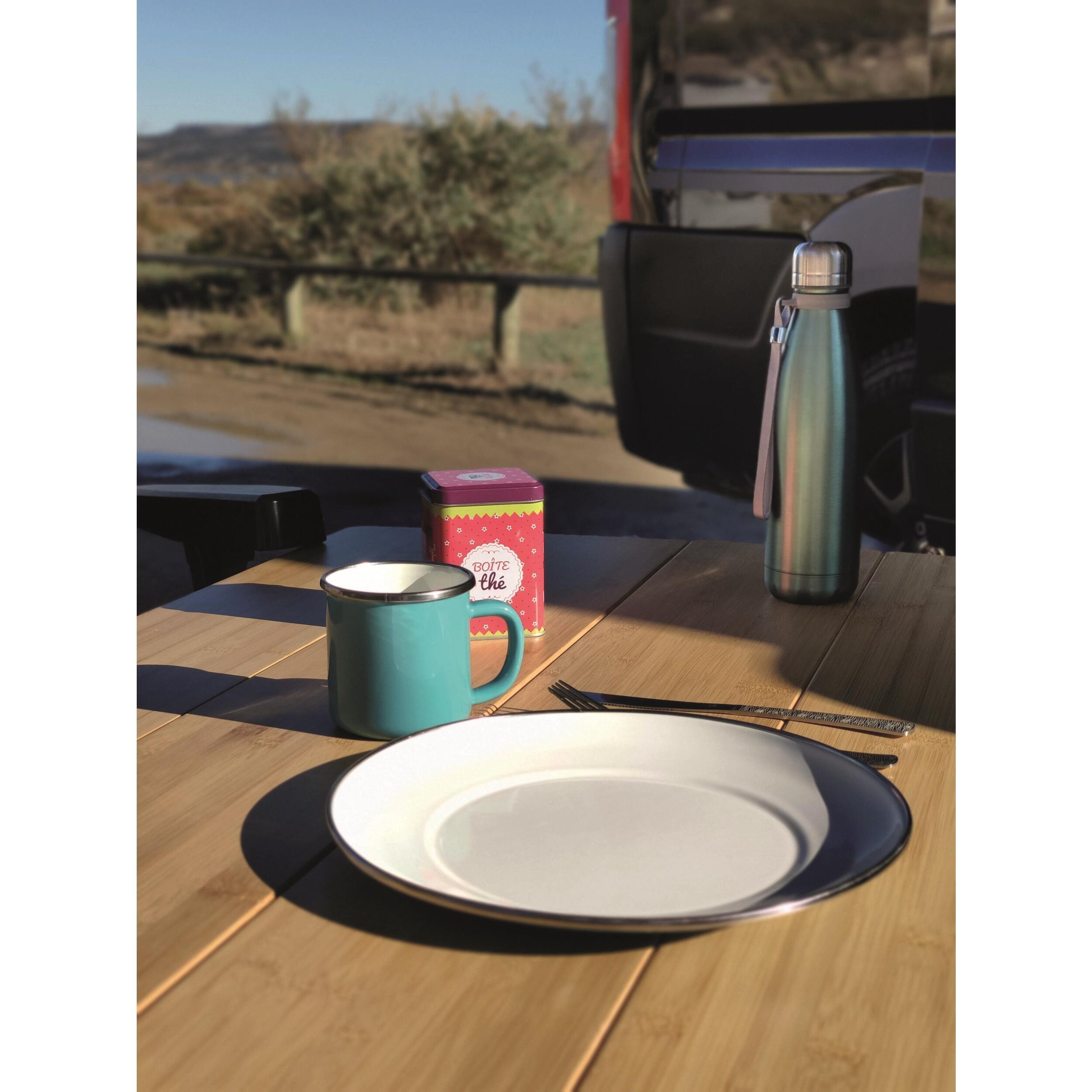 Les tasses sont composées d'une double couche d'émail. Ainsi, elles sont robustes et durables. Elles peuvent même résister jusqu'à une chaleur de 450 degrés ! Quant aux rebords, ils sont en acier inoxydable. Idéal pour le camping, pour un pique-nique ou pour des voyages en véhicules de loisirs !