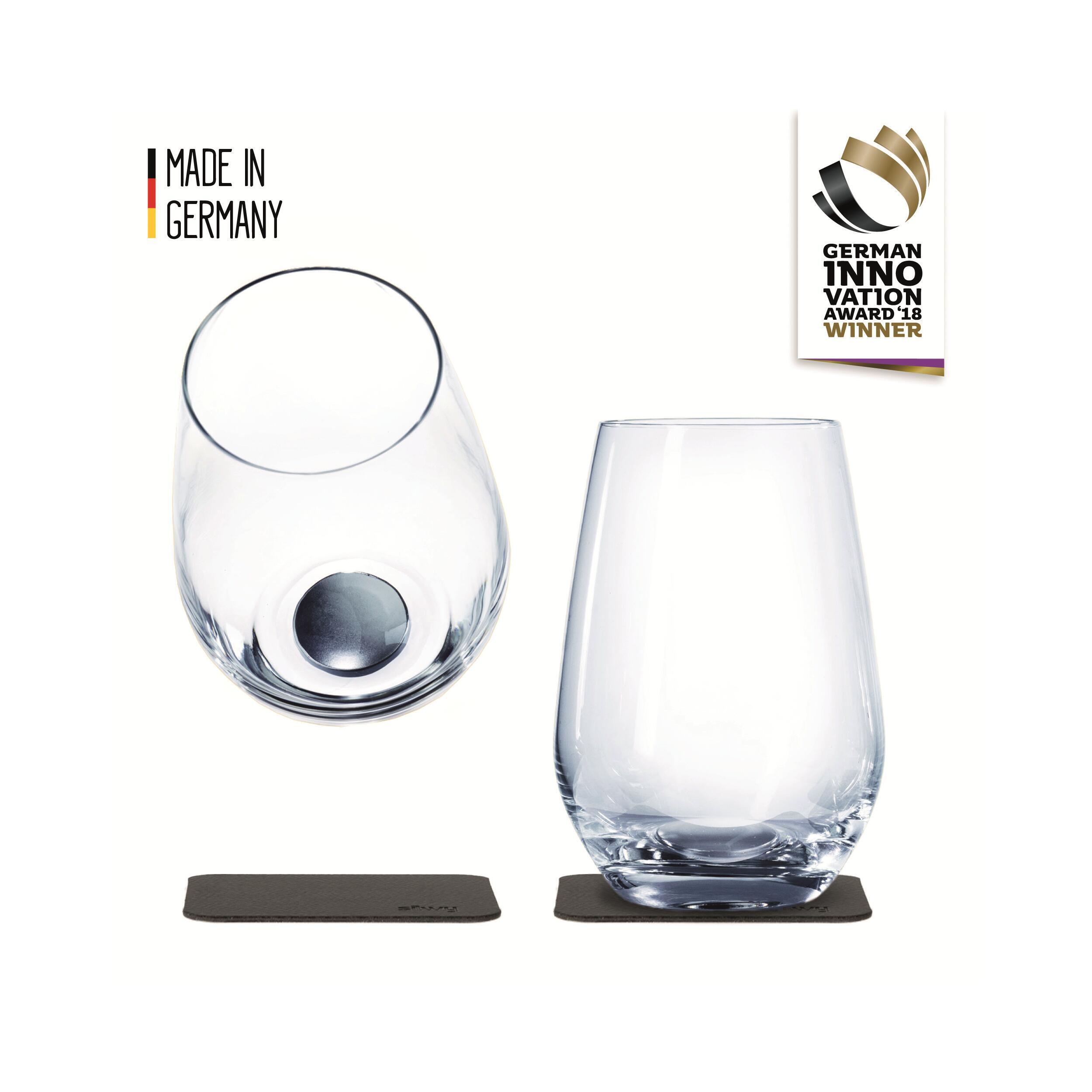Le lot de 2 verres en cristal de la marque Silwy sont spéciaux ! Ils ne tombent pas de leur sous-verre. Pratique en voyage !