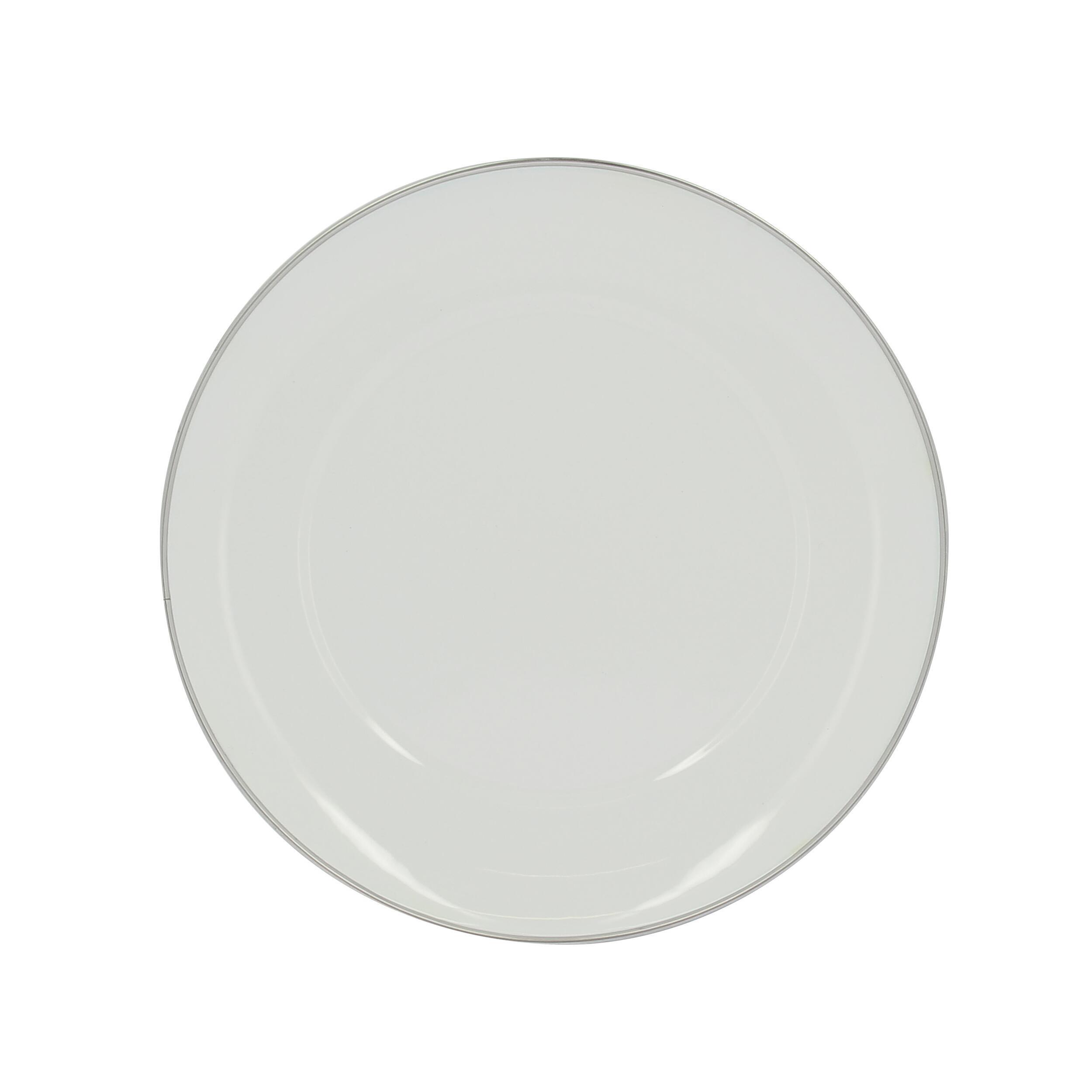 Les assiettes en acier émaillé sont chics avec des couleurs turquoise et blanchesoulignées d'un liseré argenté.