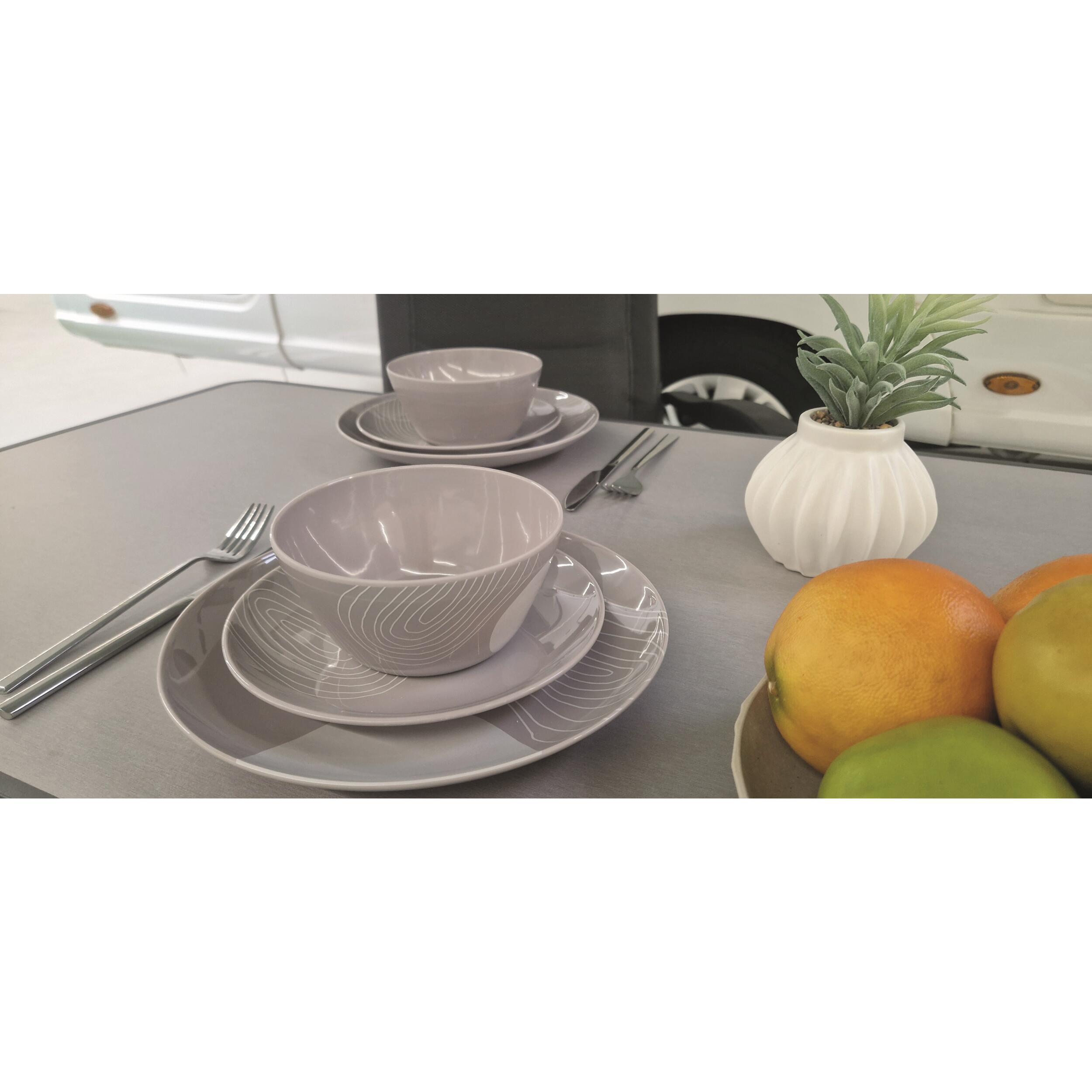 Avec le pack vaisselle Harmony de Incasa, vous profitez d’un service complet, joli et surtout parfaitement adapté à la vie nomade. Ce set 12 pièces en mélamine 100 % combine légèreté, robustesse et design moderne : idéal pour les repas en famille en camping-car, fourgon, van ou caravane.