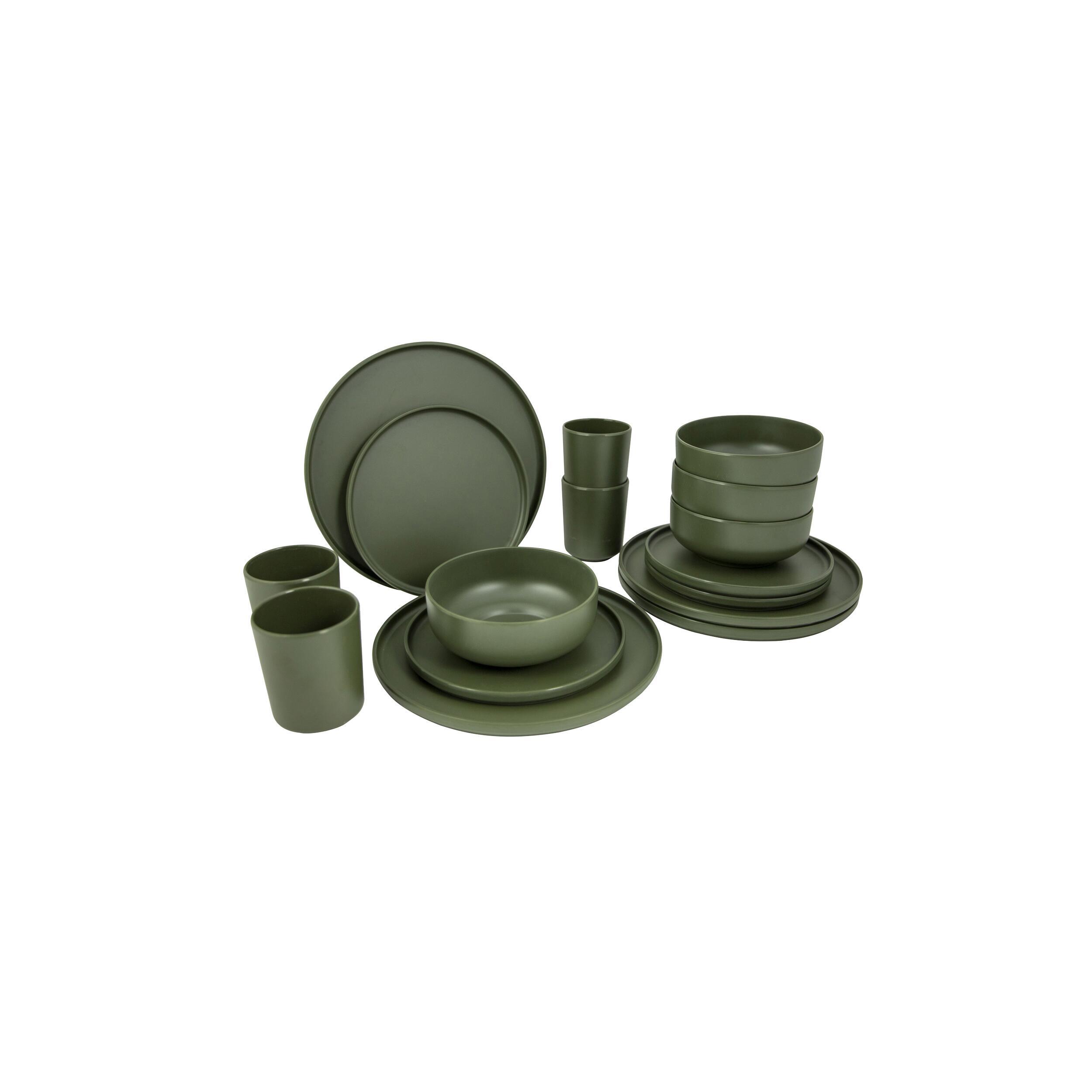 Le pack vaisselle Patom 16 pièces de Bo-Camp allie design moderne et robustesse, idéal pour les aventuriers.