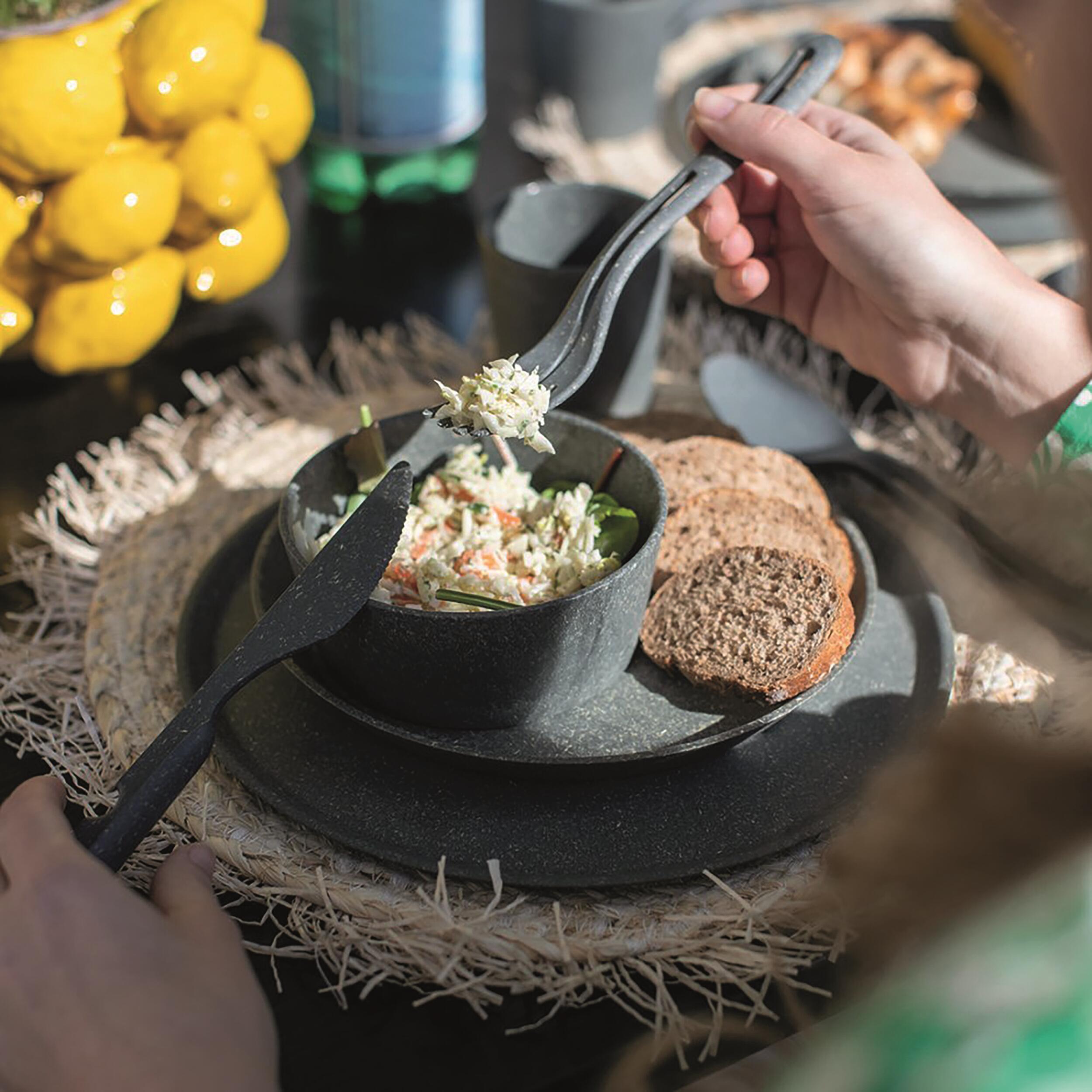 Le set 3 couverts Klikk de la marque Koziol est parfait pour manger en extérieur à n'importe quel moment.