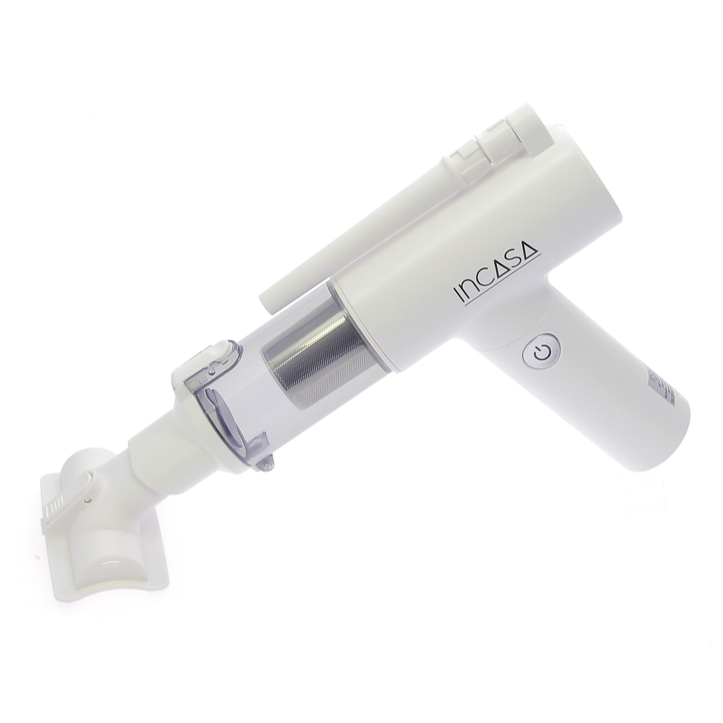 Mini aspirateur sans fil rechargeable INCASA, compact et léger, idéal pour un nettoyage rapide en mobilité. 3-en-1 (aspire, souffle, gonfle), 2 vitesses jusqu’à 13 kPa, accessoires selon modèle et autonomie jusqu’à 20 minutes, parfait pour van, camping-car ou petits espaces.