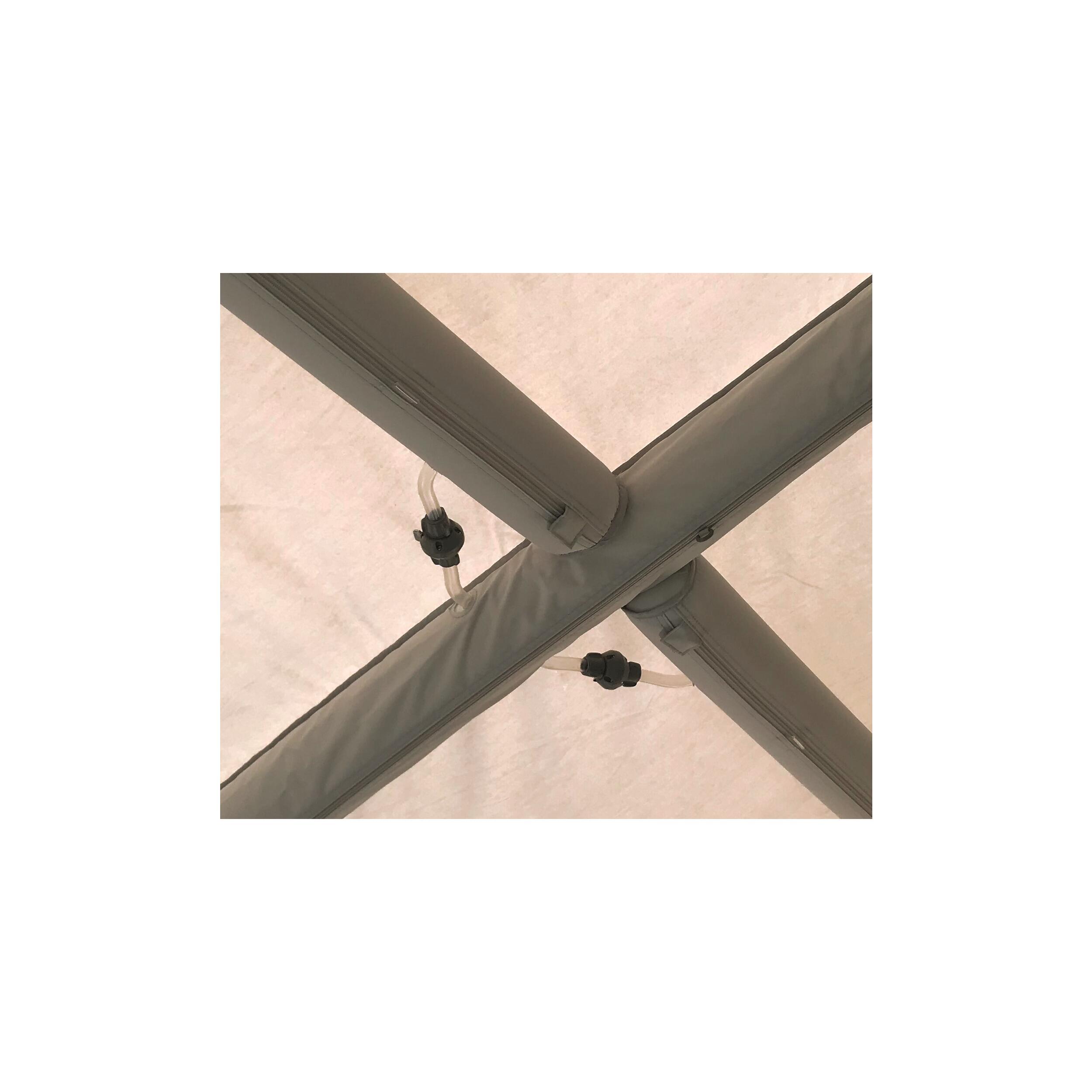 L'auvent gonflable est composé de façades et côtés avec fenêtres. Les façades et les côtés sont détachables, c'est-à-dire vous pouvez retirer les fenêtres si vous le souhaitez. Pratique pour aérer !