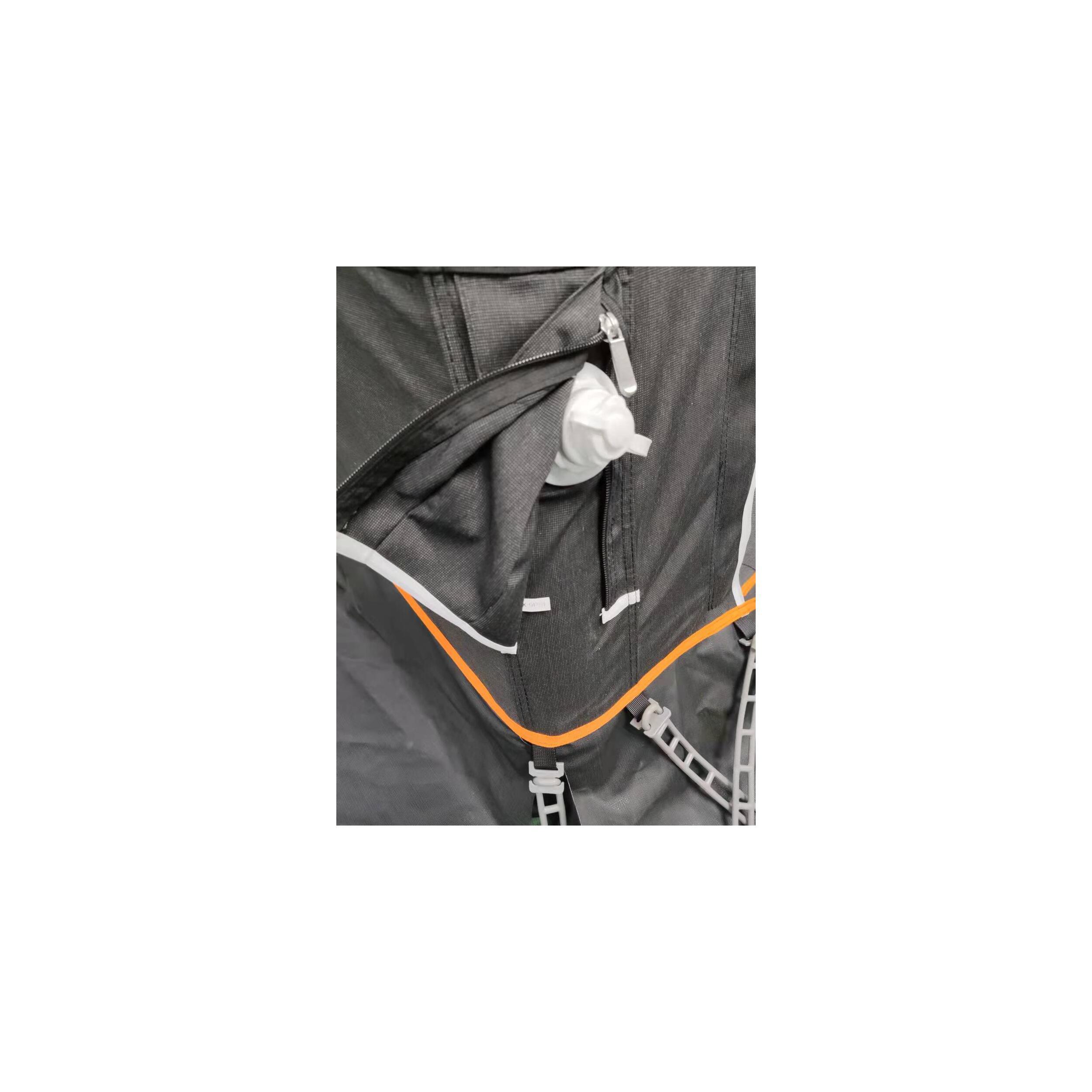 La toile de l'auvent pour les murs correspond à une toile PolyOne polyester respirante. De plus, le toit est composé d'une toile RoofOne en polyester pour une meilleure résistance.