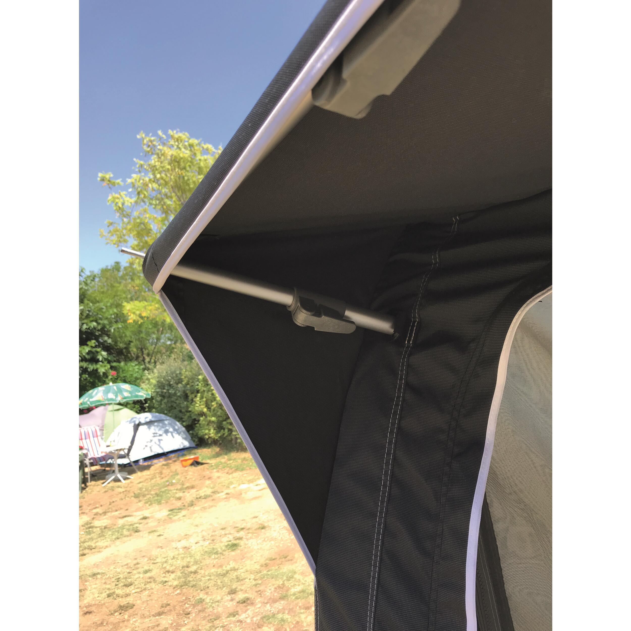 Concernant le montage, l'auvent se gonfle facilement et rapidement en un point. Les arceaux sont reliés entre eux, ce qui permet de gonfler l'auvent à partir d'un point unique. D'ailleurs, la pompe manuelle est fournie avec l'auvent.