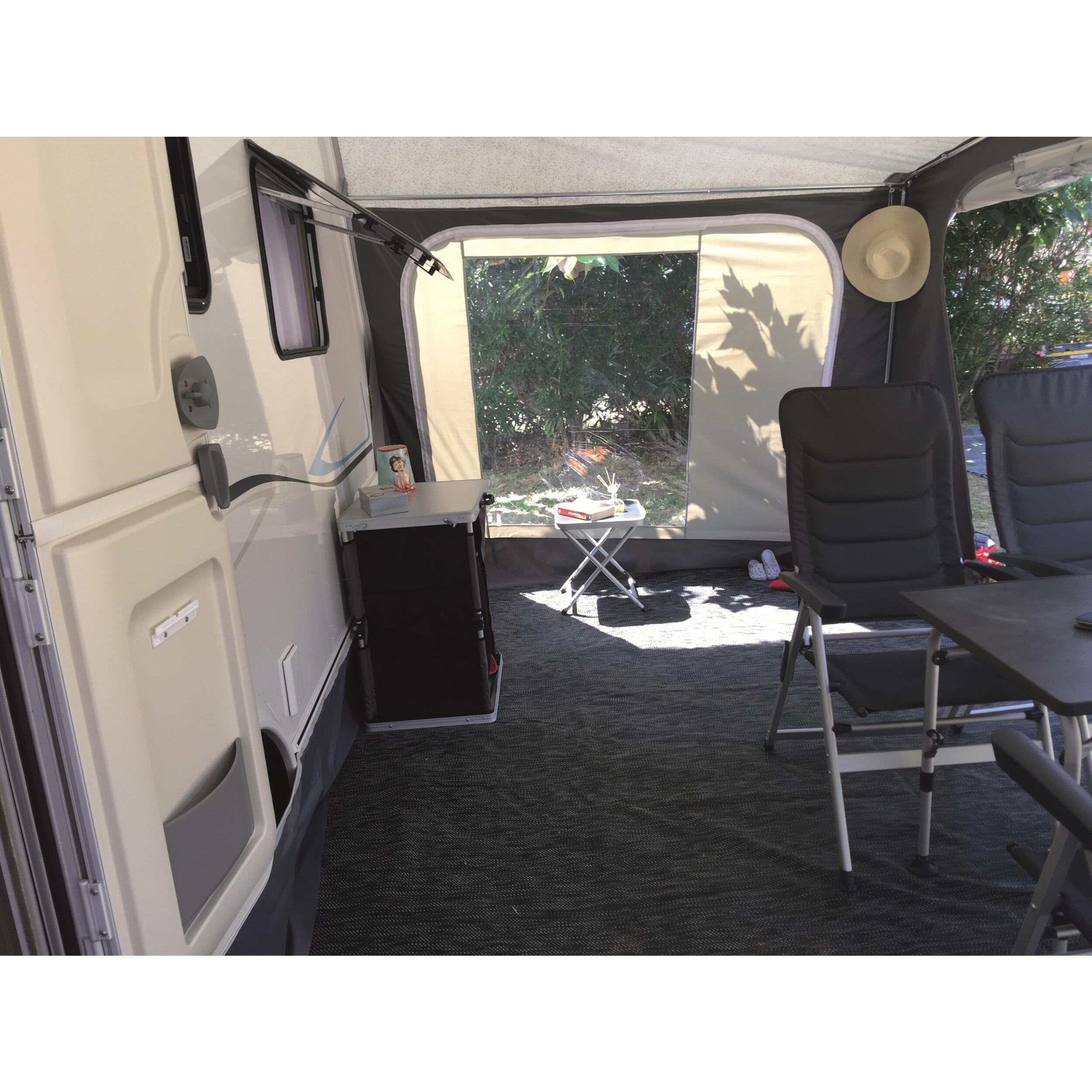 Le Madura 240 de Baya Sun coche toutes les cases : un auvent complet spacieux, robuste et bien pensé, parfait pour les caravaniers. Avec ses 240 cm de profondeur, il transforme l’extérieur de votre caravane en pièce à vivre idéale, que ce soit pour les repas, les siestes ou le rangement.
