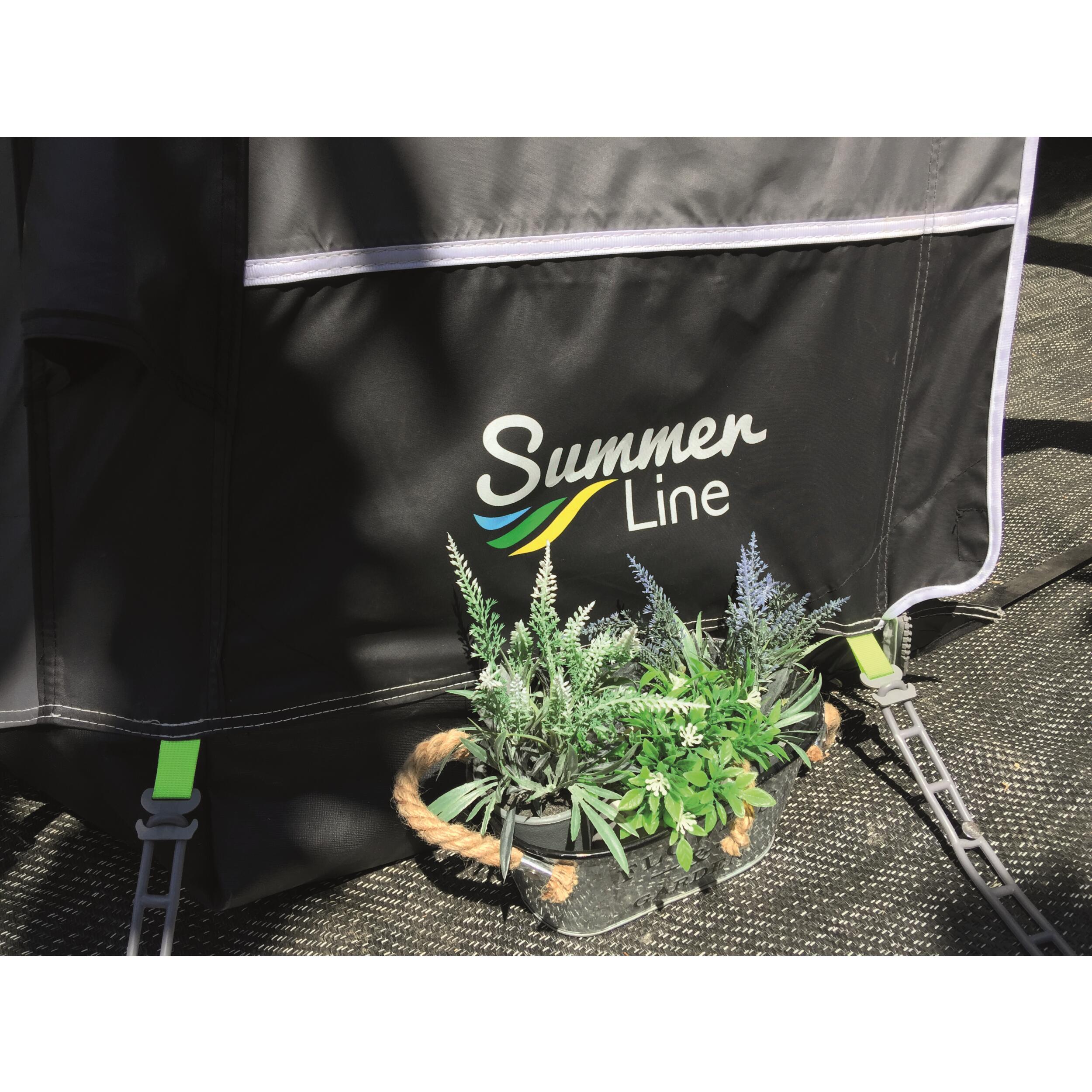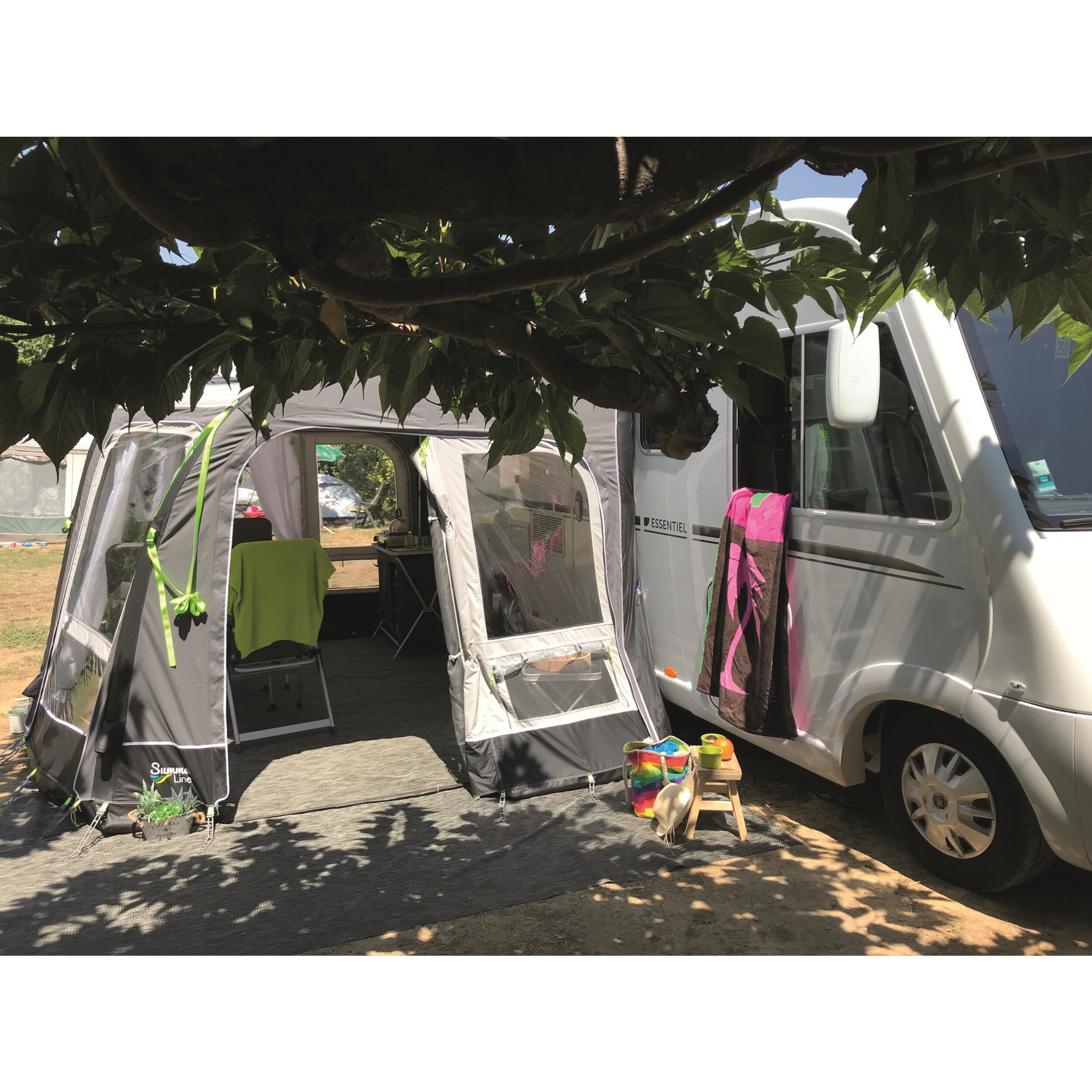 Auvent Pampéo Air Plus gonflable Summerline pour camping-car se décline en 4 hauteurs de montage (mesure du sol au rail de montage) de 2,35 à 2,95 mètres afin de s'adapter à la plupart des camping-cars. L’auvent Pampéo Air Plus est modulable : façades et côtés sont détachables.