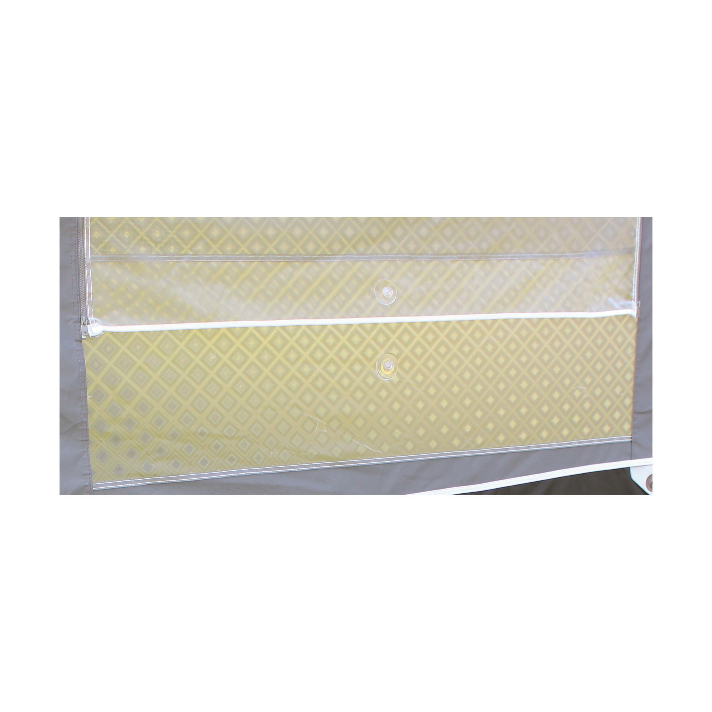 Auvent PVC ZIRCON Summerline pour caravane. toile PVC 4 saisons : robuste et facile d'entretien idéal pour les longs séjours. Façade détachable en 2 parties. Aération par moustiquaire réglable par fermeture à glissières. 2 portes. 2 grandes fenêtres en PVC cristal. Toit : toile PVC enduite double face 560 g/m2. Façade et murs : toile PVC enduite double face 470 g/m2. Bas enduit : PVC 470 g/m2. Bavette intérieure : PVC 350 g/m2. Casquette armaturée . Livré avec vélum. Pour en savoir plus sur les options, contactez-nous.