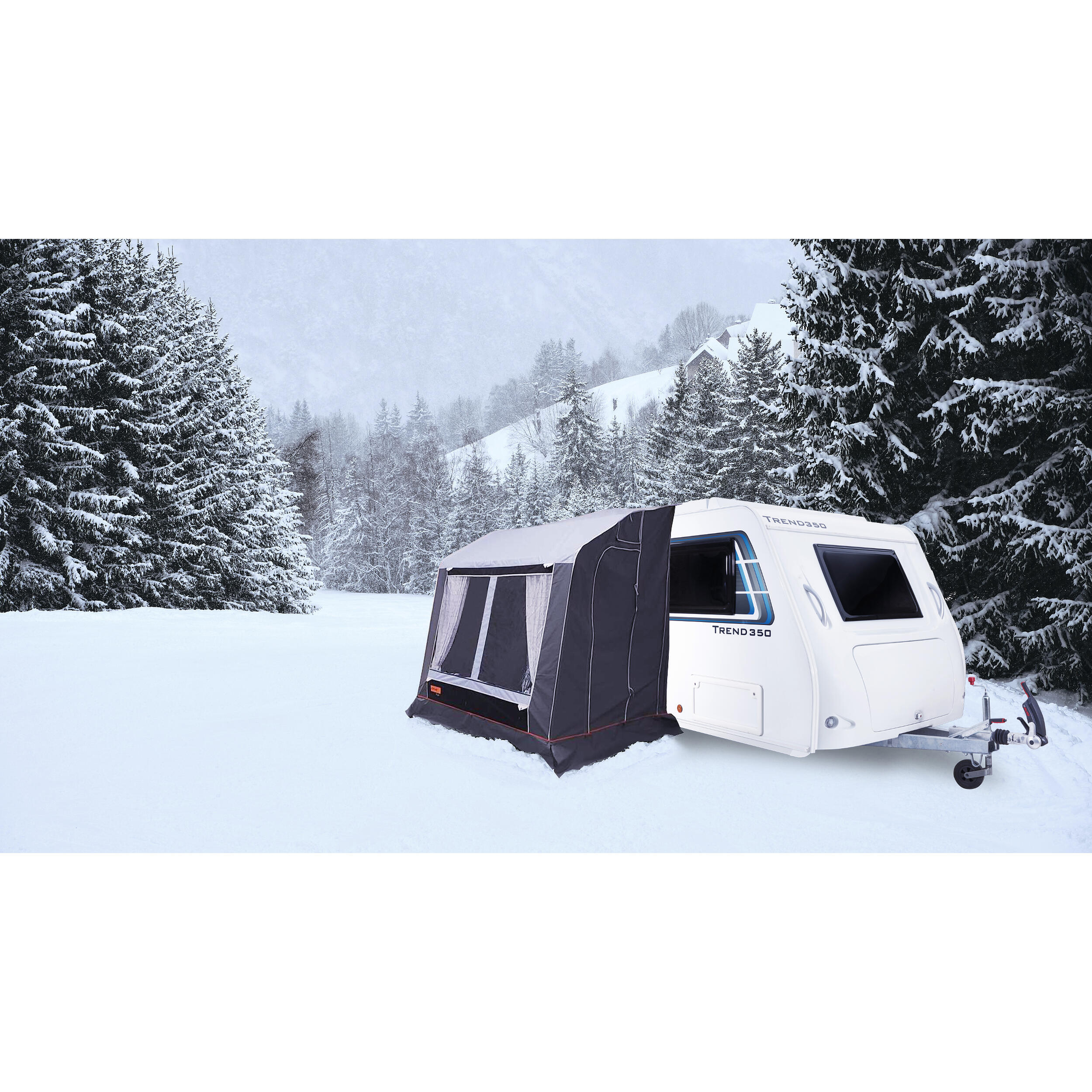 Si pour vous, l'hiver rime plus avec caravaneige qu'avec hivernage, alors le sas Neige Riga de Soplair est le choix idéal pour vous. Pourquoi ? Il vous permet d'avoir un espace vie extérieur confortable pour votre caravane et camping-car.