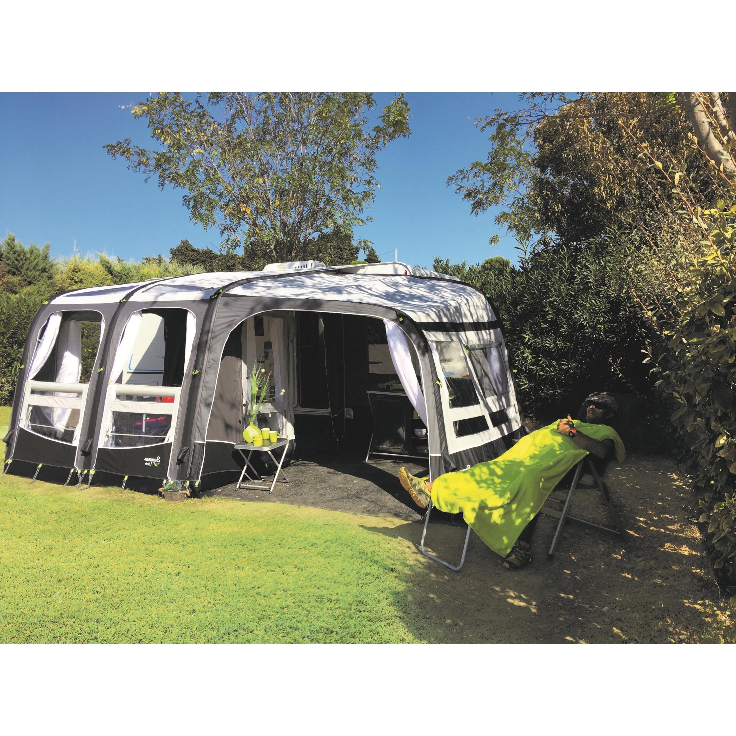 Une extension pour un auvent gonflable pour caravane