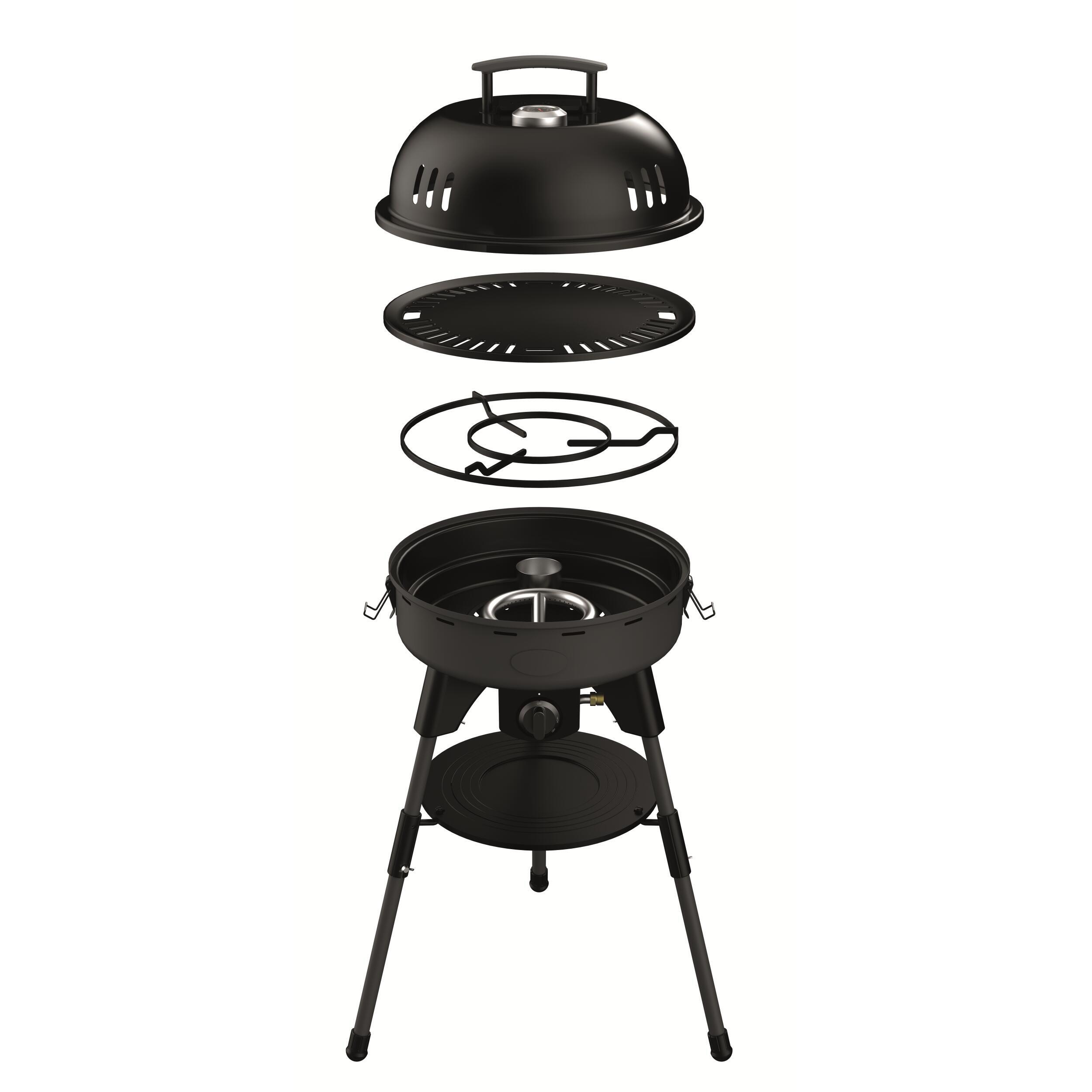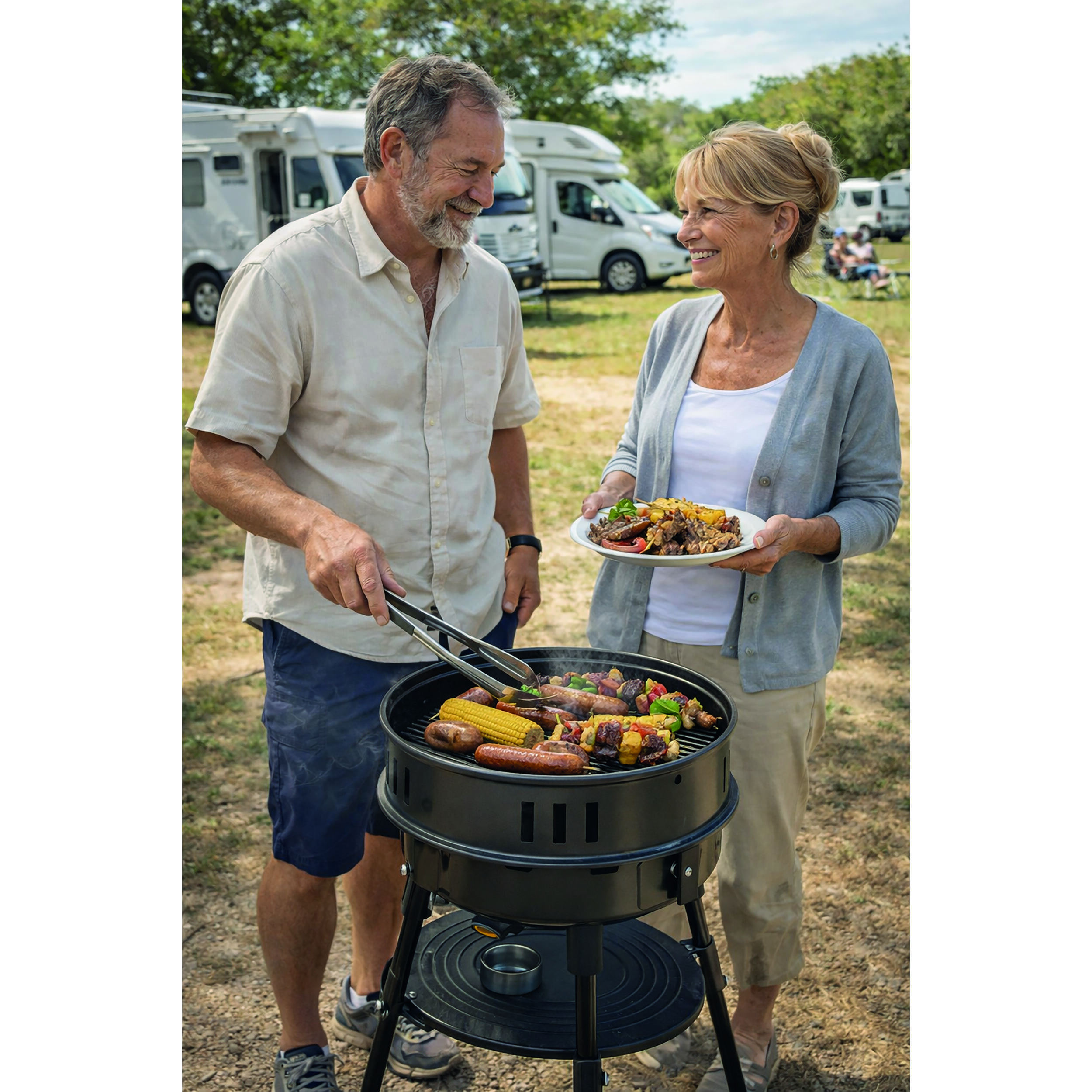 Pensé pour la vie nomade, il se transporte facilement grâce à ses pieds amovibles, sa poignée intégrée et son poids plume de 12 kg. Son design malin intègre un plateau et un support casserole, faisant de lui un véritable poste de cuisson multifonction.