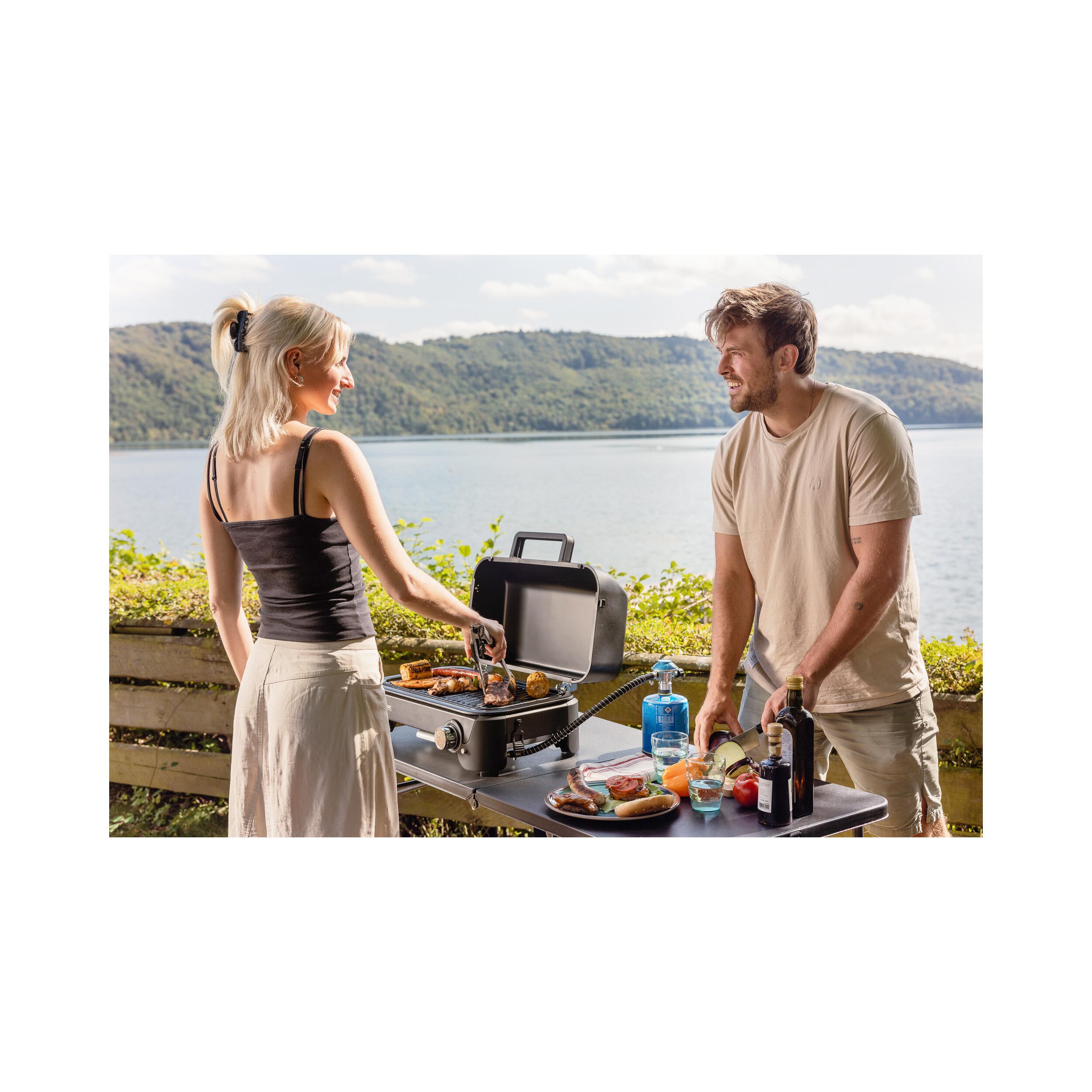 Le Tour & Grill CV Plus de Campingaz est un barbecue idéal pour cuisiner en camping ou manger en extérieur pendant une escapade. Il s’adapte à toutes vos envies. Il peut être utilisé directement sur une table ou transformé en barbecue sur pied, grâce à ses pieds en acier réglables. Avec trois hauteurs d’utilisation possibles, il s’ajuste à chaque situation : barbecue classique, pique-nique ou cuisson à hauteur de table. Fonctionnant sur cartouche de gaz CV 470 Campingaz® (à commander séparément), il offre jusqu’à 2h30 d’autonomie.