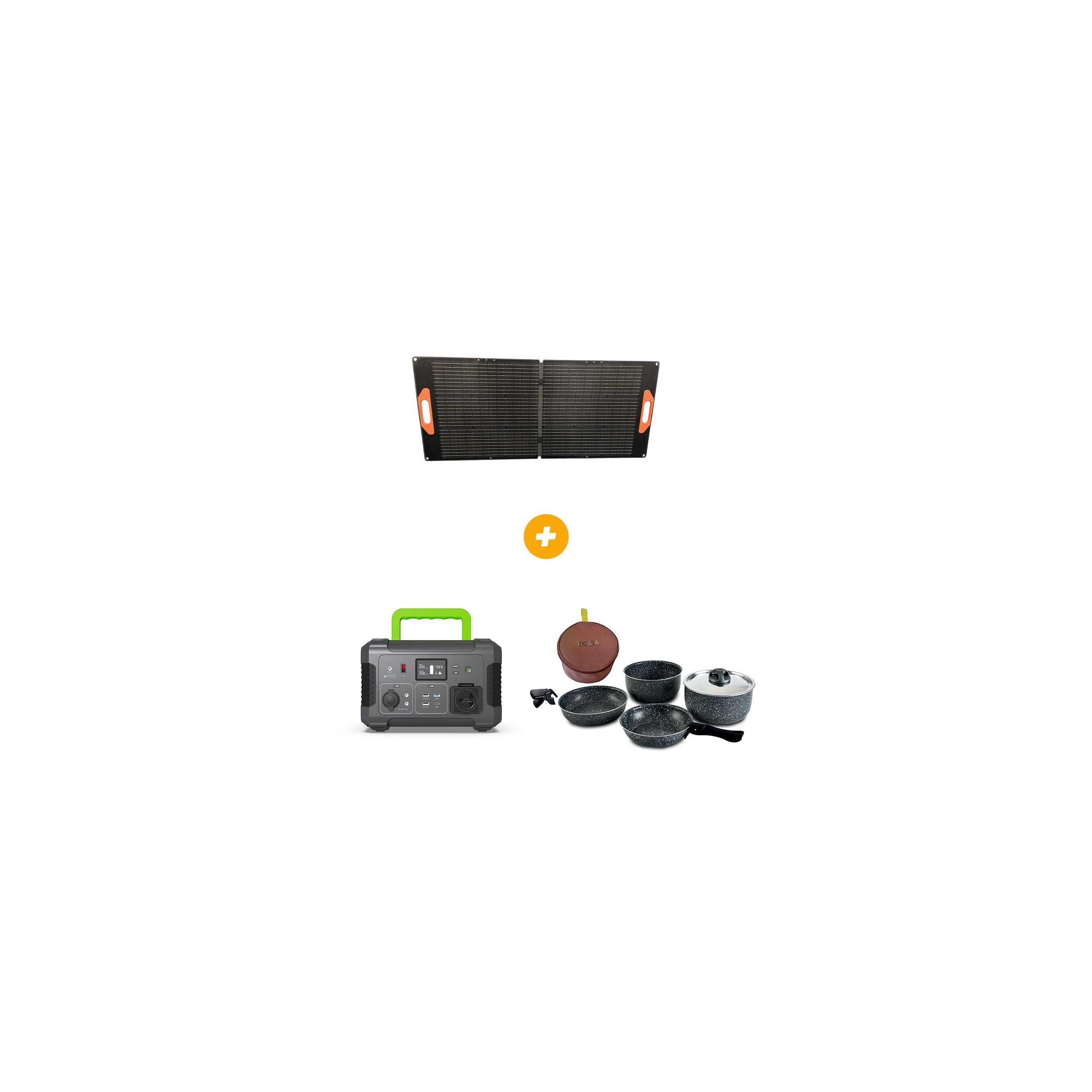 Le pack regroupe une Powerstation Kooknekt 500 (Référence RG-054722), un panneau solaire valise 100W Eza (Référence RG-253928) et une glacière à compression Eza (Référence RG-364346).