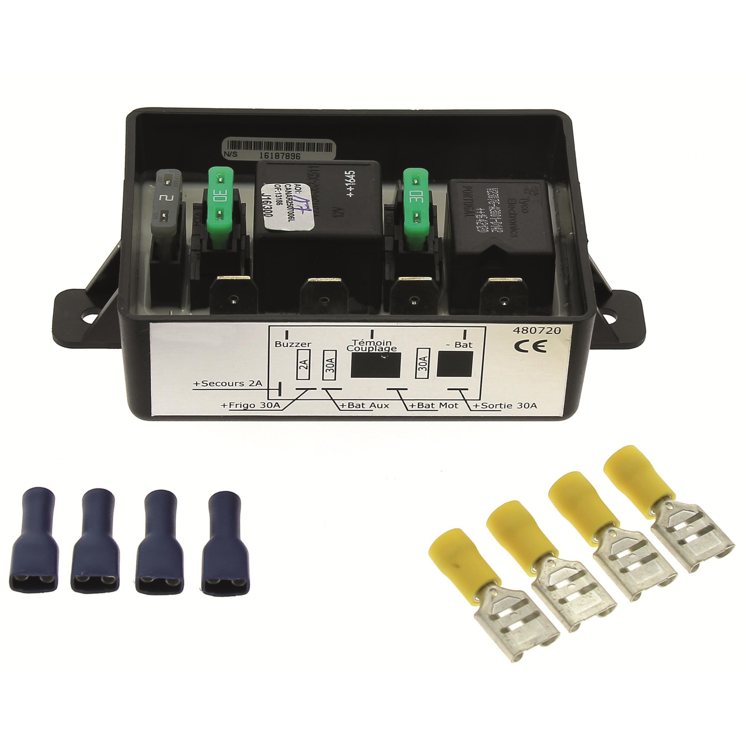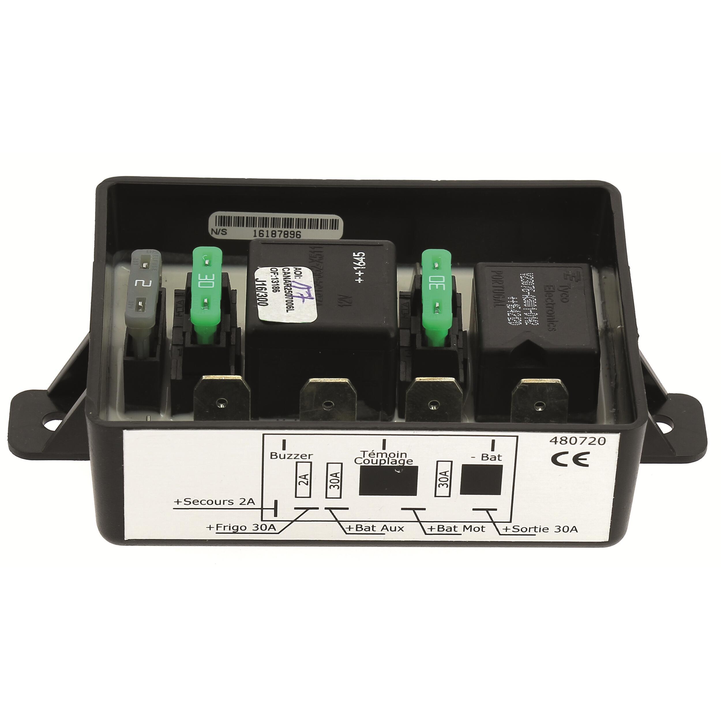 Le coupleur séparateur de batterie permet de mettre en parallèle votre batterie de démarrage (batterie moteur) et vos batteries auxiliaires. Il connecte et déconnecte automatiquement les batteries installées en parallèle selon des seuils de tension prédéfinis. Il assure à la batterie moteur de ne jamais se décharger complètement pour que vous puissiez redémarrer sans problème. Il préserve vos batteries d'une décharge complète qui pourrait les endommager. Le coupleur séparateur assure la charge de toutes les batteries en donnant la priorité à la batterie moteur et dès lors que la batterie moteur passe au-dessus de 13,5 volts, toutes les batteries sont chargées simultanément. Le courant de charge maximum est de 70 ampères. Convient pour des batteries de capacité individuelle jusqu'à 300 Ampères.