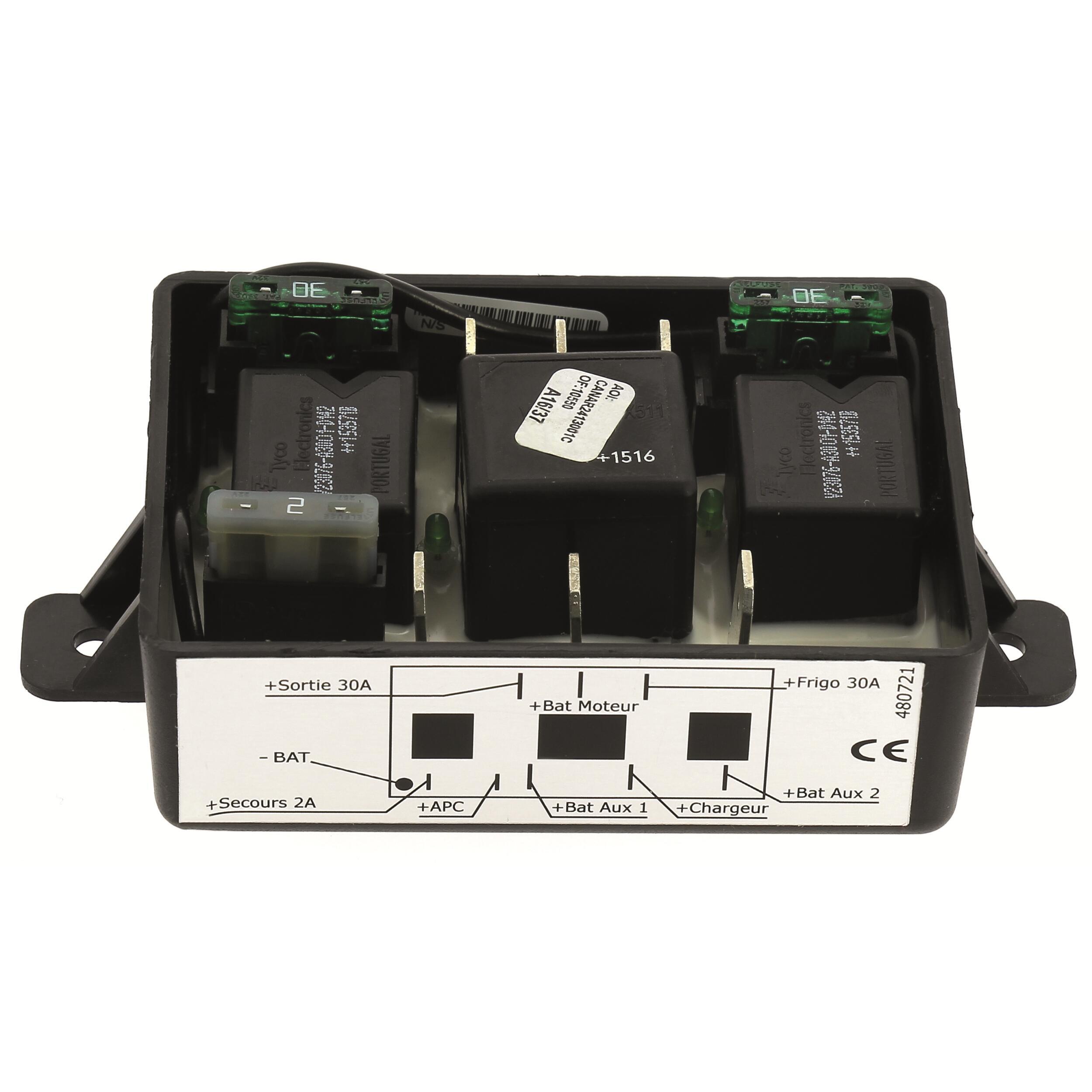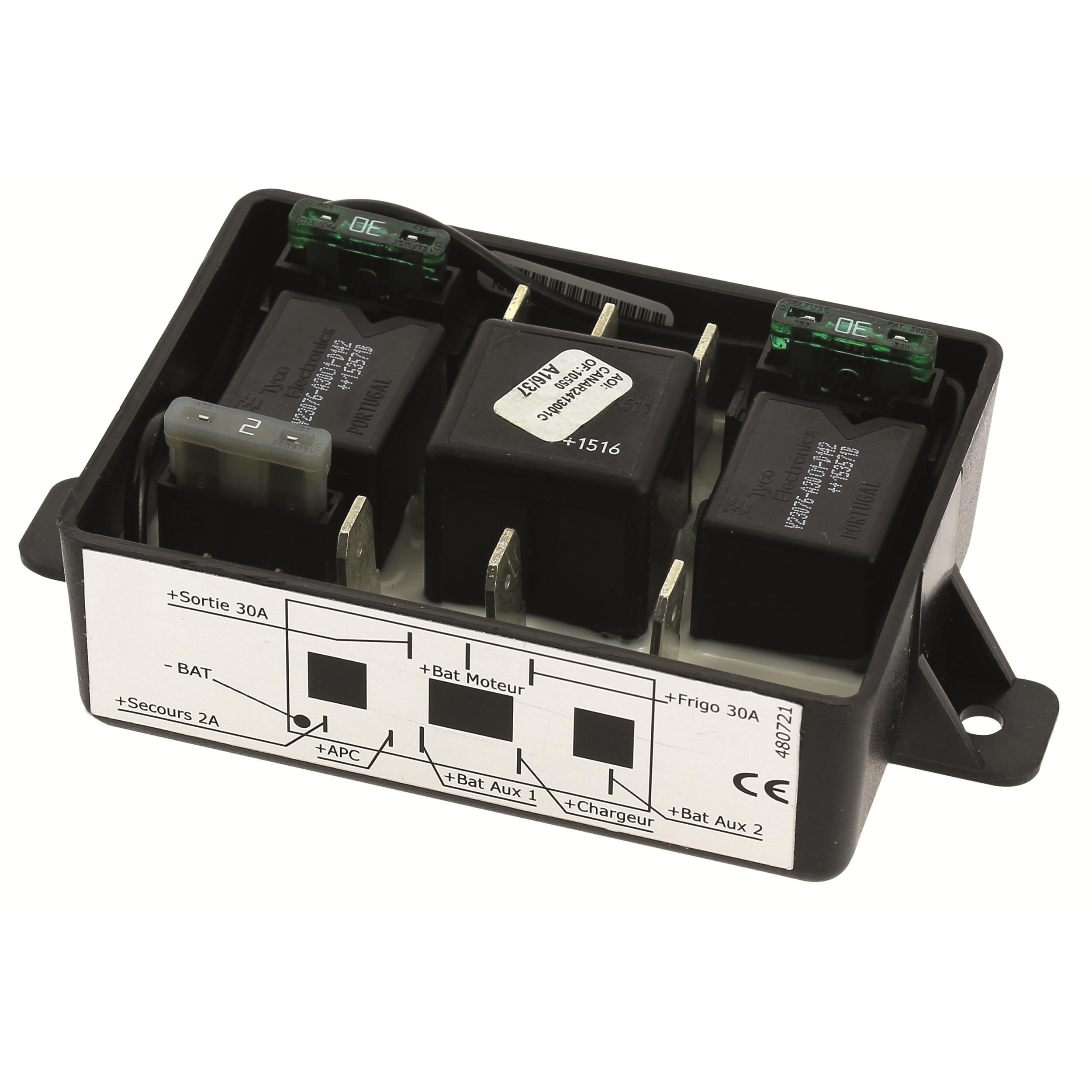 Le coupleur séparateur de batterie permet de mettre en parallèle votre batterie de démarrage (batterie moteur) et vos batteries auxiliaires. Il connecte et déconnecte automatiquement les batteries installées en parallèle selon des seuils de tension prédéfinis. Il assure à la batterie moteur de ne jamais se décharger complètement pour que vous puissiez redémarrer sans problème. Il préserve vos batteries d'une décharge complète qui pourrait les endommager. Le coupleur séparateur assure la charge de toutes les batteries en donnant la priorité à la batterie moteur et dès lors que la batterie moteur passe au-dessus de 13,5 volts, toutes les batteries sont chargées simultanément. Le courant de charge maximum est de 70 ampères. Convient pour des batteries de capacité individuelle jusqu'à 300 Ampères.