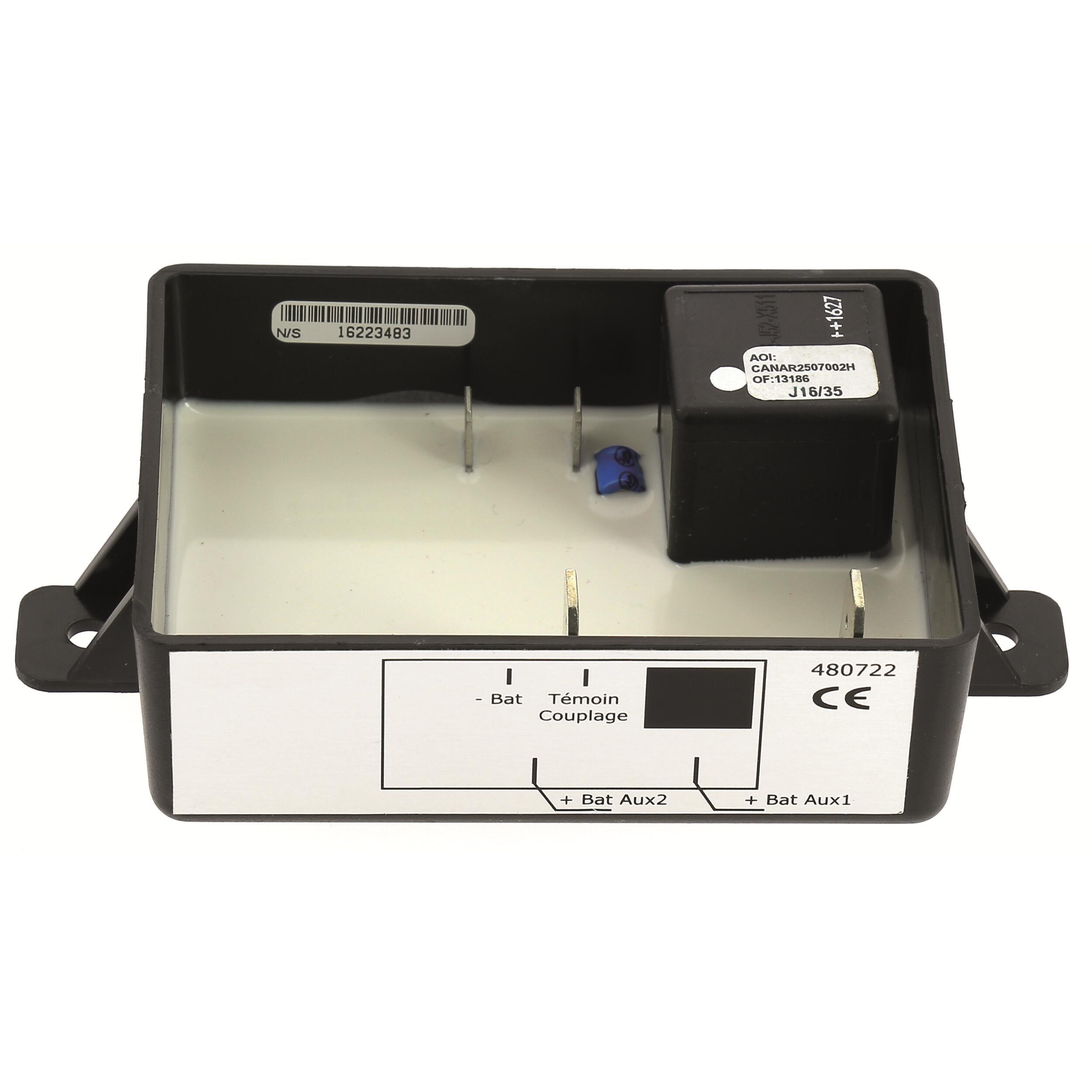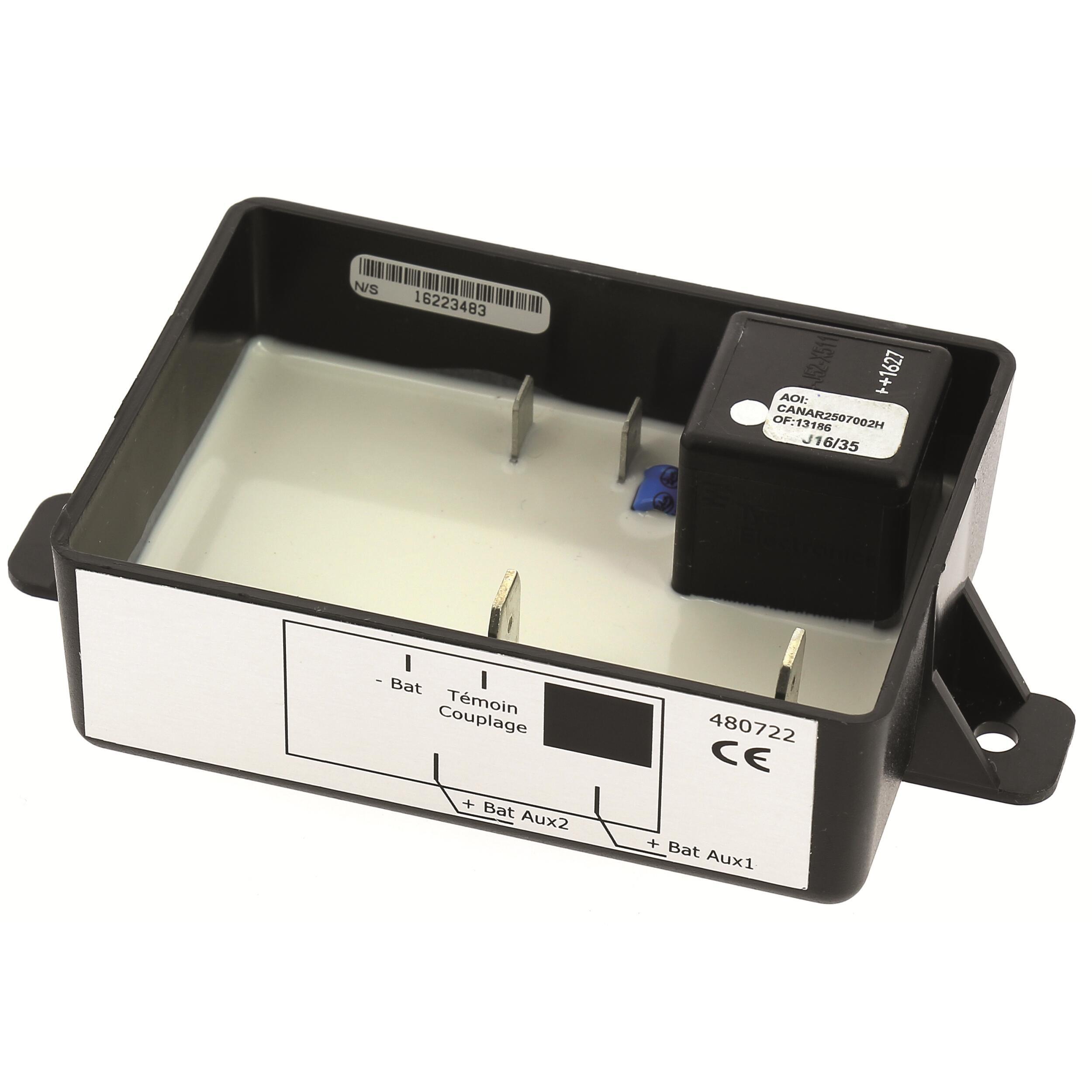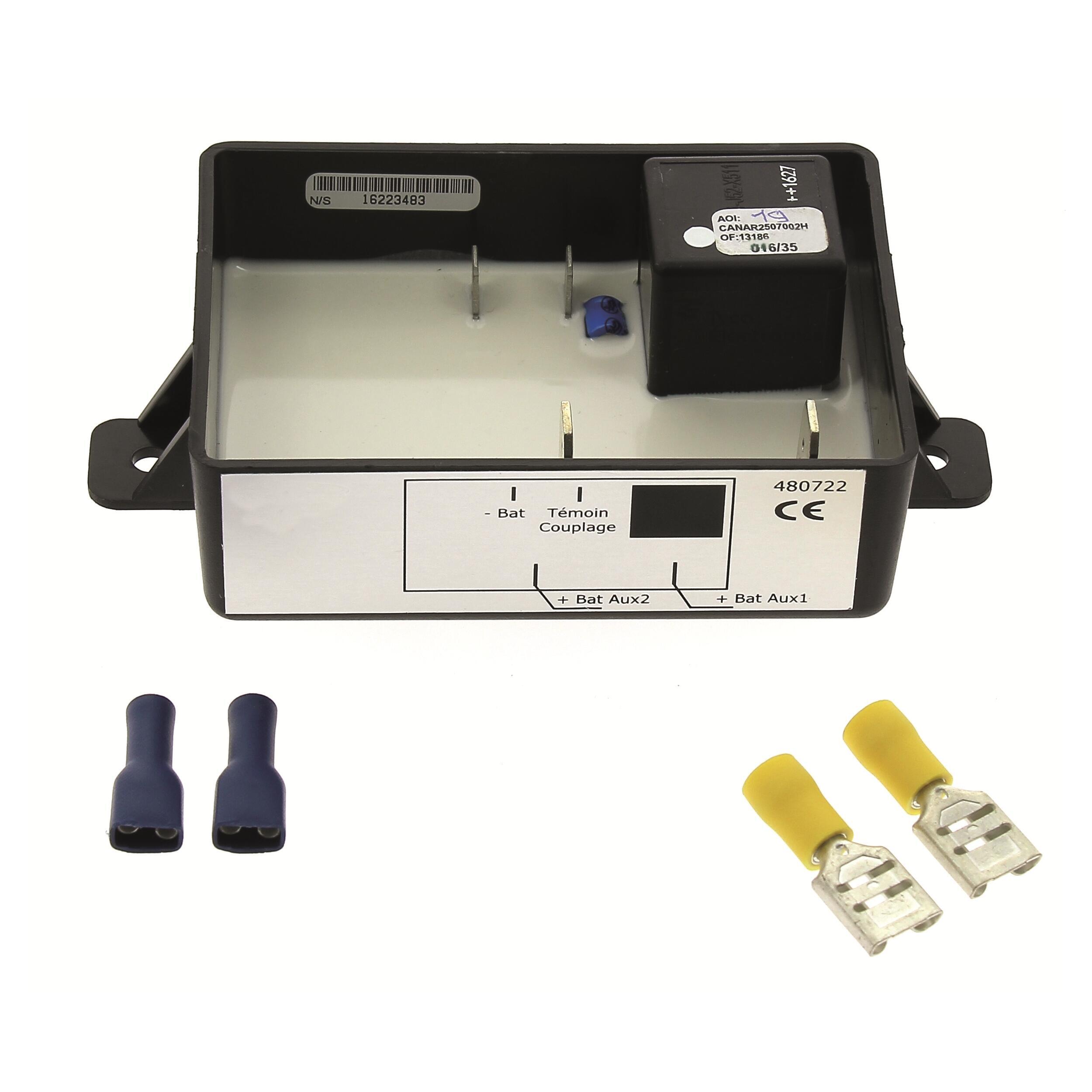 Spécial 3ème batterie. Seuil de connexion : 13,6V. Seuil de déconnexion 12,5V. Témoin de couplage.